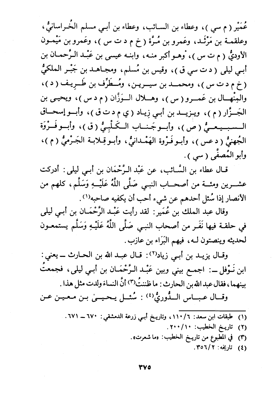 (1) طبقات ابن سعد: 6 / 110، وتاريخ أبي زرعة الدمشقي: 670 - 671.