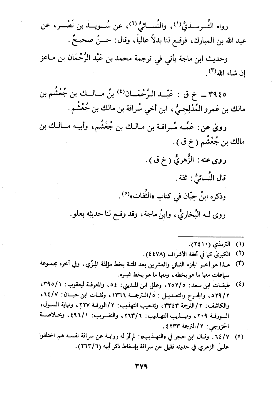 (5) 7 / 64. وَقَال ابن حجر في "التهذيب": لم أر له رواية عن سراقة نفسه هم اختلفوا على الزُّهْرِيّ في حديثه فقيل عن سراقة بإسقاط ذكر ابيه (6 / 263) .