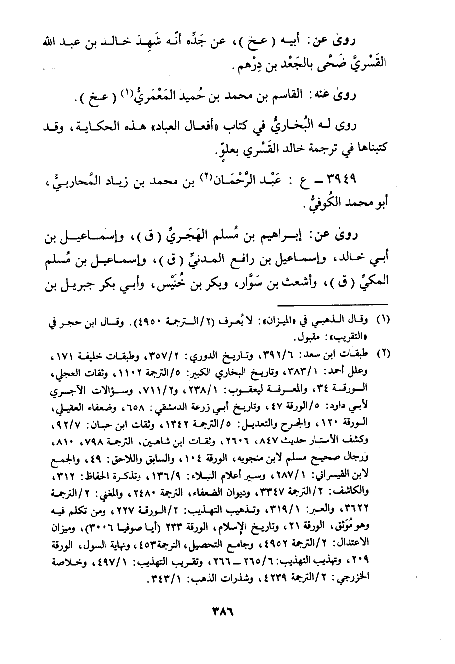 3949 - ع: عَبْد الرَّحْمَن بن مُحَمَّد بن زياد المحاربي (2) ، أَبُو مُحَمَّد الكوفي.