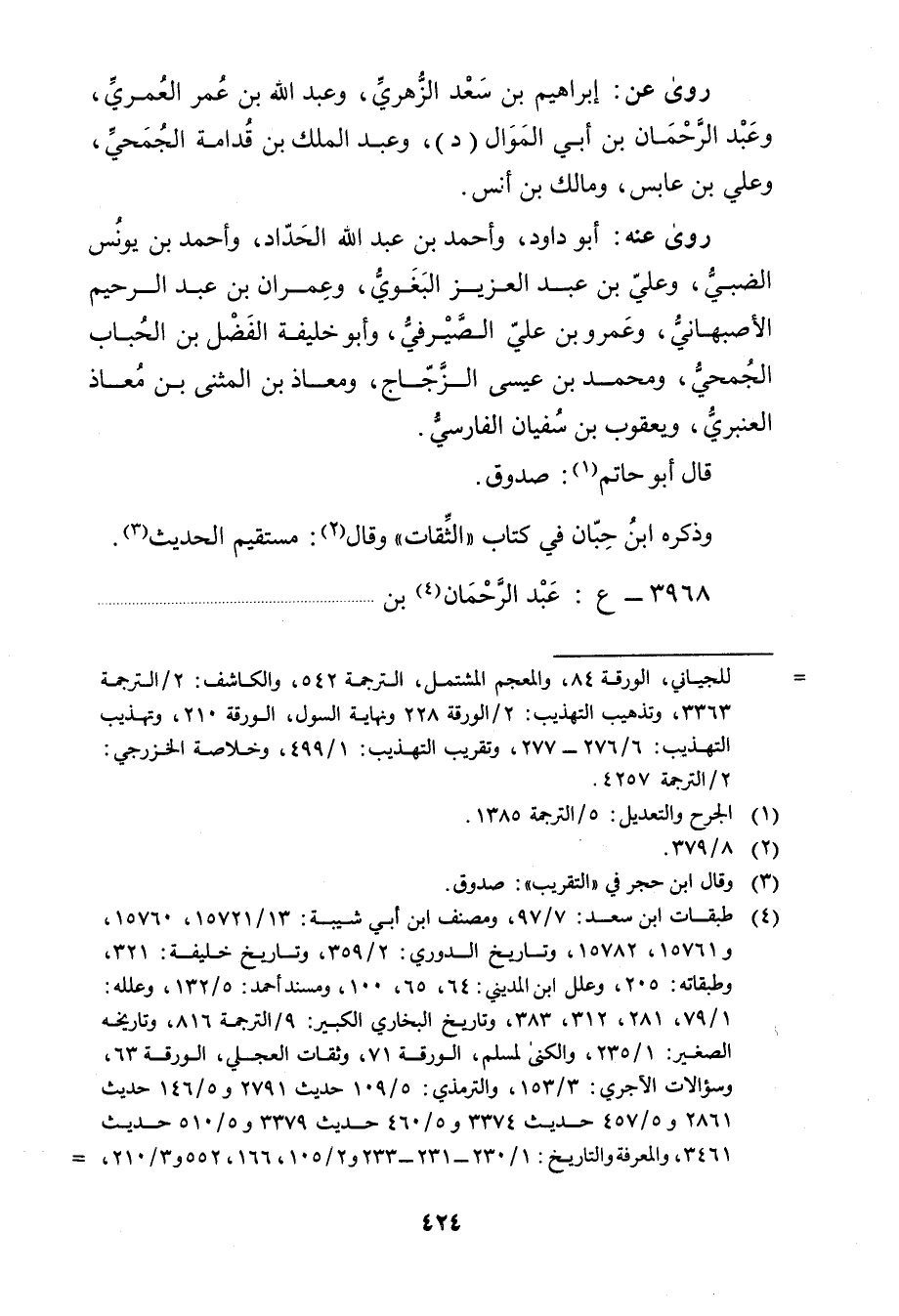3968 - ع: عَبْد الرَّحْمَن بن مل (4) بْن عَمْرو بْن عدي بْن وهب بن ربيعة بن سعد بن جذيمة (5) ،