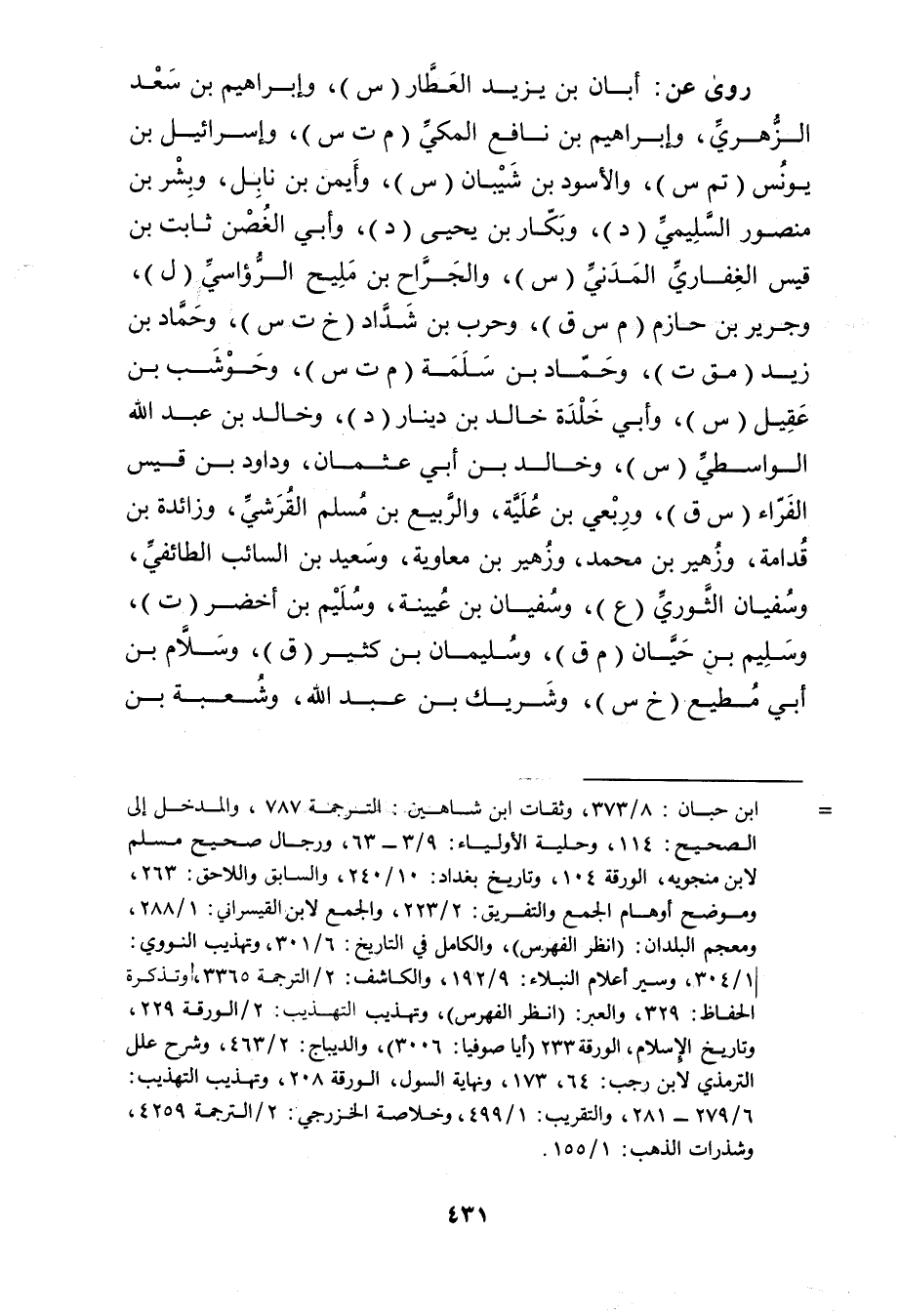 = ابن حبان: 8 / 373، وثقات ابن شاهين: الترجمة 787، والمدخل إلى الصحيح: 114، وحلية الاولياء: 9 / 3 - 63، ورجال صحيح مسلم لابن منجويه، الورقة 104، وتاريخ بغداد: 10 / 240، والسابق واللاحق: 263، وموضح أوهام الجمع والتفريق: 2 / 223، والجمع لابن القيسراني: 1 / 288، ومعجم البلدان:،، والكامل في التاريخ: 6 / 301، وتهذيب النووي: 1 / 304، وسير أعلام النبلاء: 9 / 192، والكاشف: 2 / الترجمة 3365، وتذكرة الحفاظ: 329، والعبر،، وتهذيب التهذيب: 2 / الورقة 229، وتاريخ الاسلام، الورقة 233، (أيا صوفيا: 3006) ، والديباج: 2 / 463، وشرح علل التِّرْمِذِيّ لابن رجب: 64، 173، ونهاية السول، الورقة 208، وتهذيب التهذيب: 6 / 279 - 281، والتقريب: 1 / 499، وخلاصة الخزرجي: 2 / الترجمة 4259، وشذرات الذهب: 1 / 155.