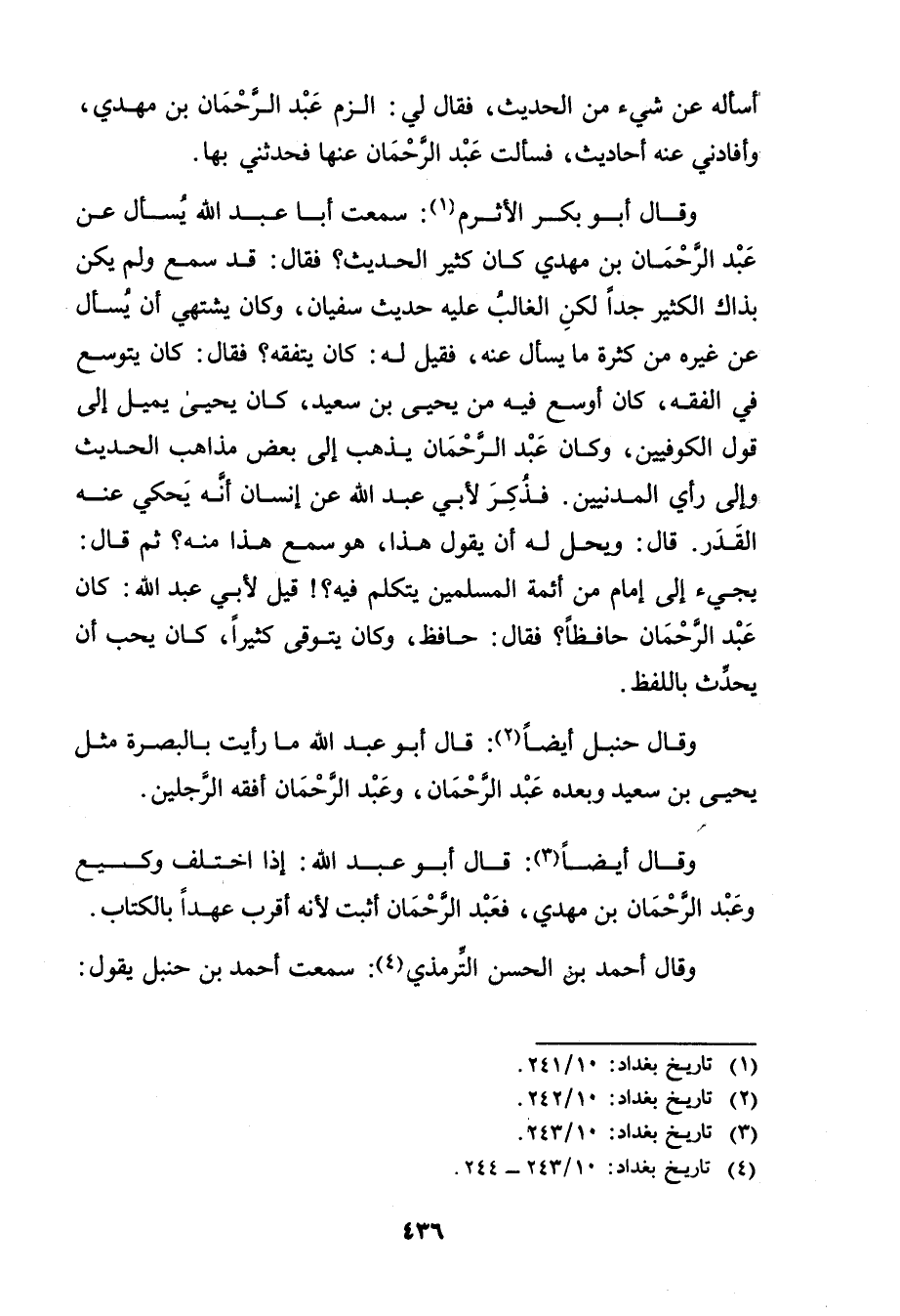 (4) تاريخ بغداد: 10 / 243 - 244.