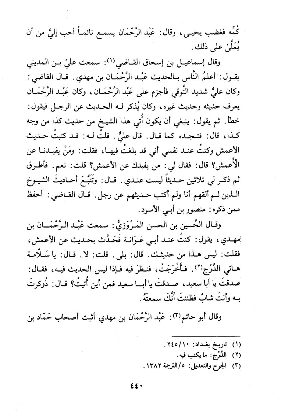 وَقَال أبو حاتم (3) : عَبْد الرَّحْمَن بْن مهدي أثبت أصحاب حماد بْن