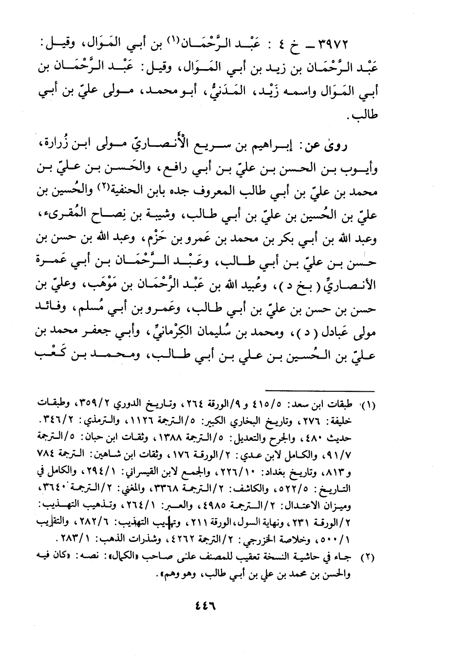 3972 - خ 4: عَبْد الرَّحْمَن بن أَبي الموال (1) ، وقيل: عَبْد الرَّحْمَن بْن زيد بْن أَبي الموال، وقيل: عَبْد الرحمن بْن أَبي الموال واسمه زيد، المدني، أَبُو مُحَمَّد، مولى علي بْن أَبي طالب.