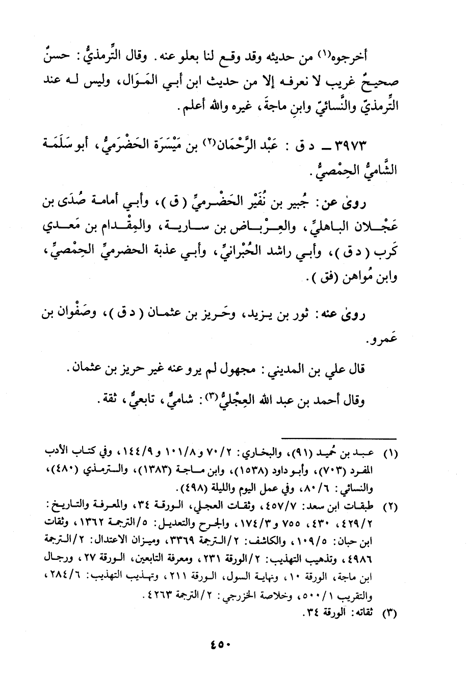 3973 - د ق: عَبْد الرَّحْمَن بن ميسرة الحضرمي (2) ، أَبُو سلمة الشامي الحمصي.
