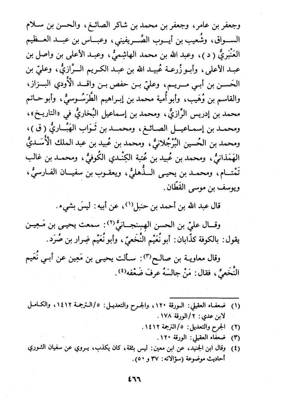 (1) ضعفاء العقيلي: الورقة 120، والجرح والتعديل: 5 / الترجمة 1412، والكامل لابن عدي: 2 / الورقة 178.