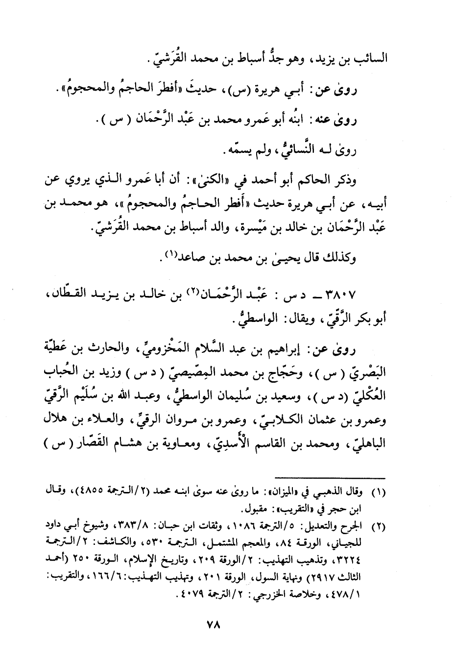 3807 - د س: عَبْد الرَّحْمَن بن خالد بن يَزِيد القطان (2) ، أَبُو بَكْر الرَّقِّيّ، ويُقال: الواسطي.