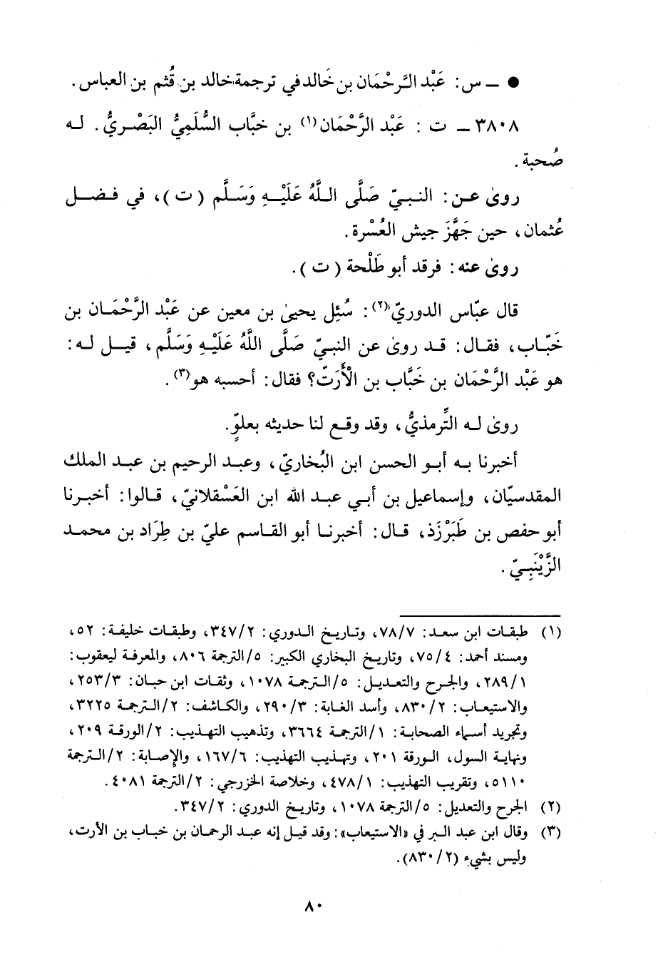 3808 - ت: عَبْد الرَّحْمَن بن خباب السلمي البَصْرِيّ (1) . له صحبة.