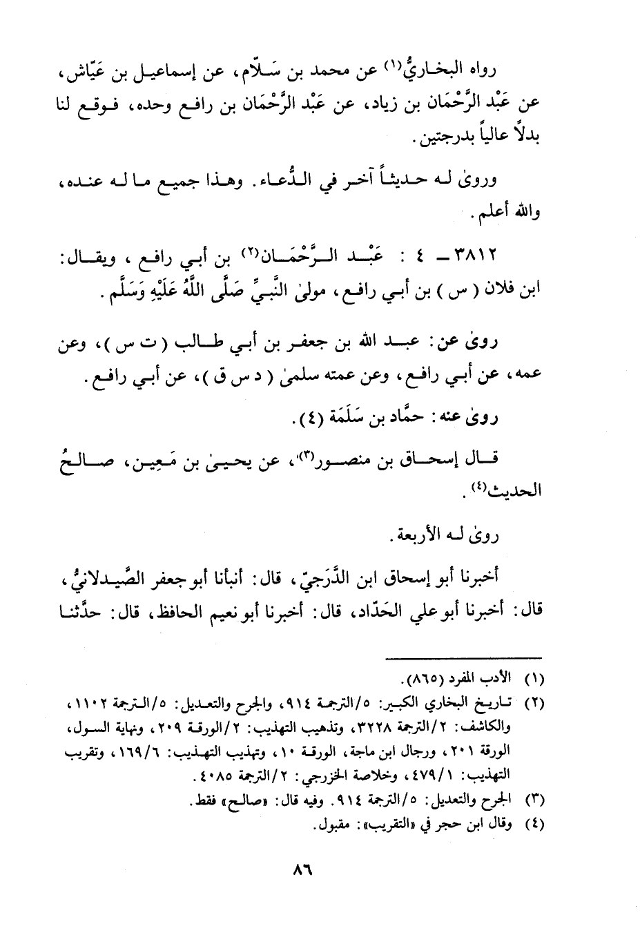 3812 - 4: عَبْد الرَّحْمَن بن أَبي رافع (2) ، ويُقال: ابن فلان (س) بْن أَبي رافع، مولى النَّبِيّ صَلَّى اللَّهُ عَلَيْهِ وسَلَّمَ.