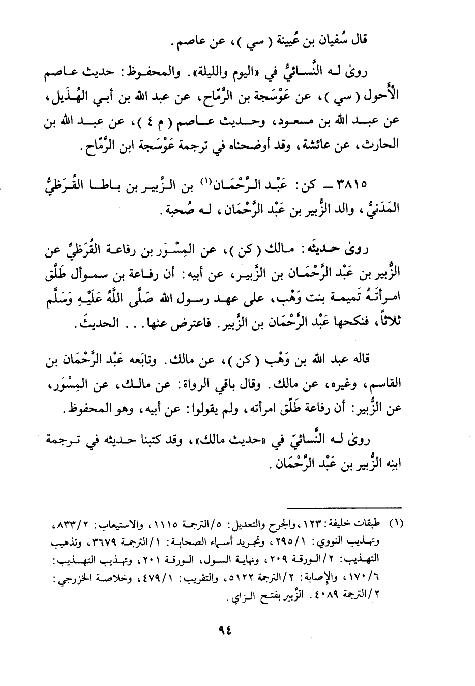 3815 - كن: عَبْد الرَّحْمَن بن الزبير بن باطا القرظي المدني (1) ، والد الزبير بْن عَبْد الرَّحْمَن، له صحبة.