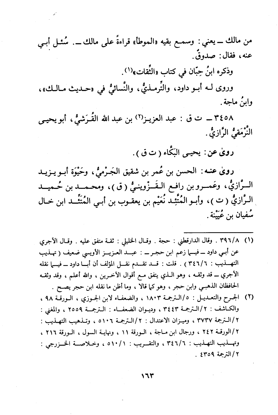 (1) 8 / 396. وَقَال الدَّارَقُطْنِيُّ: حجة. وَقَال الخليلي: ثقة متفق عليه. وَقَال الآجُرِّيّ عَن أبي داود - فيما زعم ابن حجر: عبد العزيز الأُوَيسي ضعيف (تهذيب التهذيب: 6 / 346) . قلت: قد تقدم نقل المؤلف أن أبا داود - فيما نقله الآجُرِّيّ - قد وثقه، وهو الذي يتفق مع أقوال الاخرين، والله أعلم، وقد وثقه الحافظان الذهبي وابن حجر، وهو كما قالا، وما أظن ما نقله ابن حجر يصح.