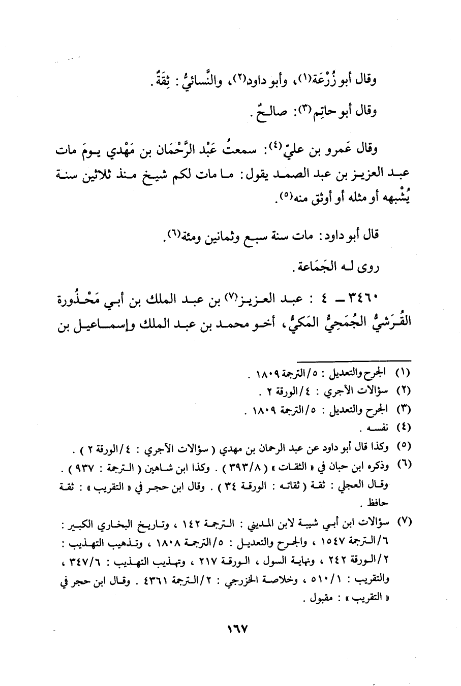 (7) سؤالات ابن أَبي شَيْبَة لابن المديني: الترجمة 142، وتاريخ البخاري الكبير: 6 / الترجمة 1547، والجرح والتعديل: 5 / الترجمة 1808، وتذهيب التهذيب: 2 / الورقة 242، ونهاية السول، الورقة 217، وتهذيب التهذيب: 6 / 347، والتقريب: 1 / 510، وخلاصة الخزرجي، 2 / الترجمة 1436. وَقَال ابن حجر في "التقريب"مقبول.