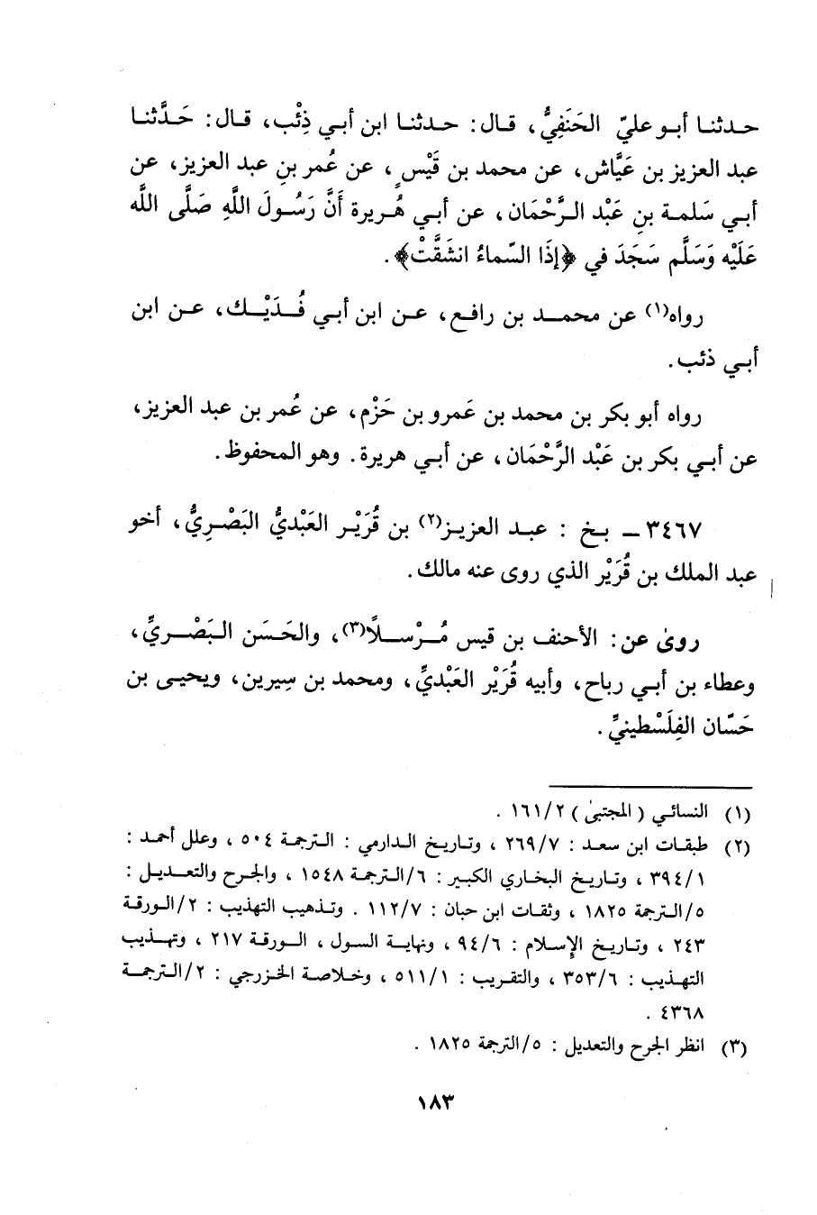 3467 - بخ: عبد العزيز بن قرير العبدي البَصْرِيّ (2) ، أخو عَبد المَلِك بن قرير الذي روى عنه مالك.
