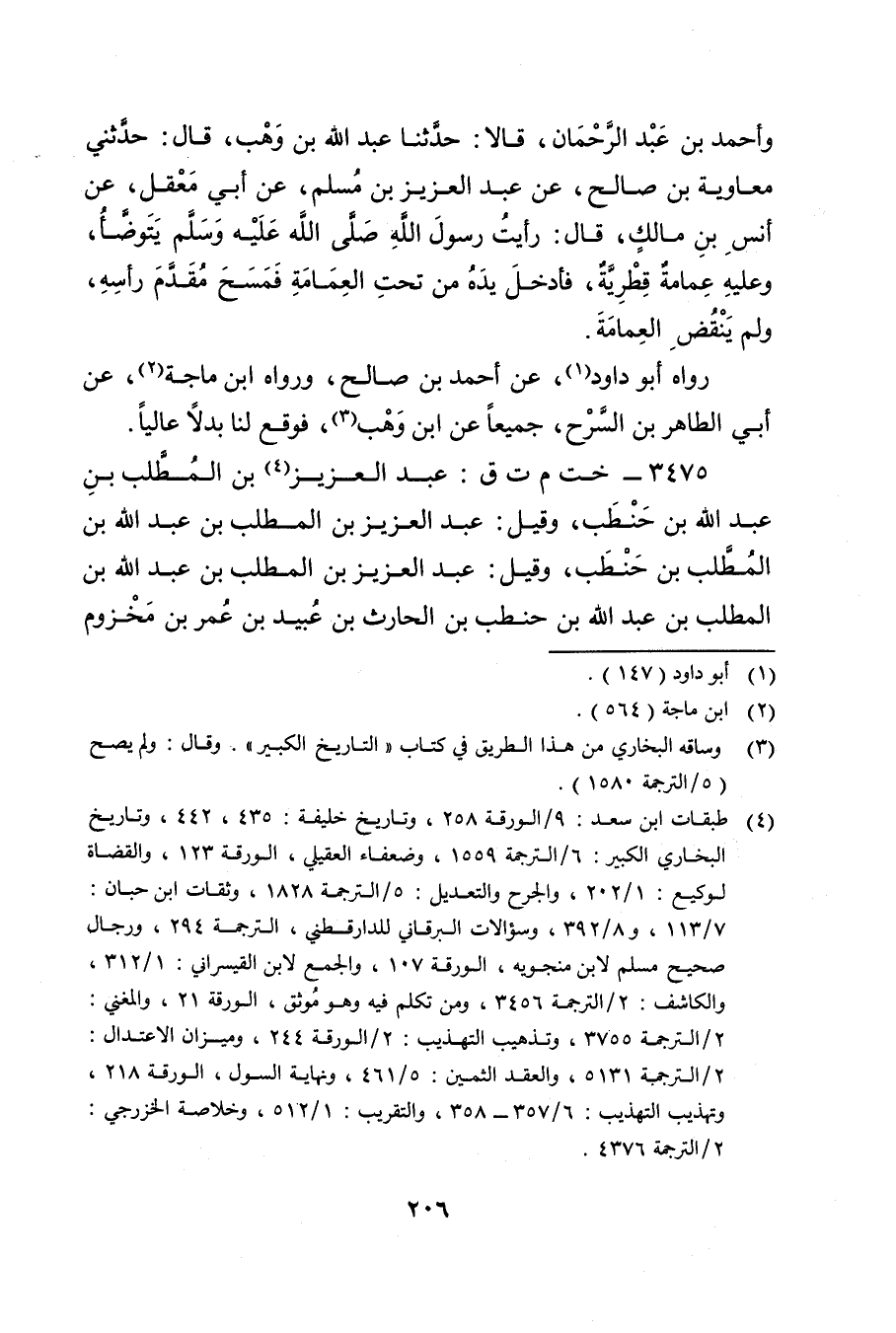 3475 - خت م ت ق: عبد العزيز بن المطلب بْن عَبد الله بْن حنطب (4) ، وقيل: عبد العزيز بن المطلب بْن عَبد الله بْن المطلب بن حنطب، وقيل: عبد العزيز بْن المطلب بْن عَبد اللَّه بْن المطلب بْن عَبد اللَّهِ بن حنطب بن الْحَارِث بن عُبَيد بن عُمَر بن مخزوم