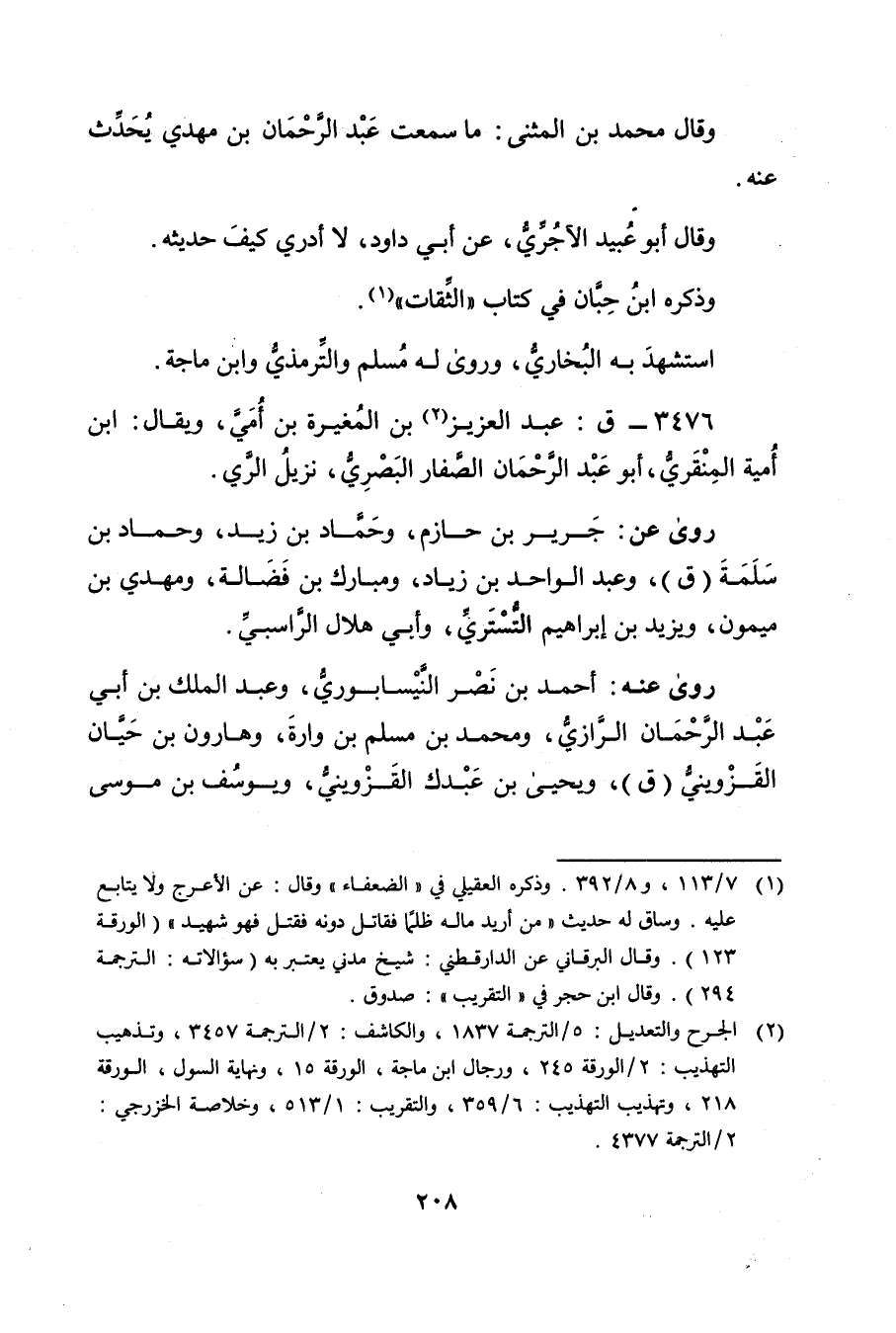(2) الجرح والتعديل: 5 / الترجمة 1837، والكاشف: 2 / الترجمة 3457، وتذهيب التهذيب: 2 / الورقة 245، ورجال ابن ماجة، الورقة 15، ونهاية السول، الورقة 218، وتهذيب التهذيب: 6 / 359، والتقريب: وخلاصة الخزرجي: 2 / الترجمة 4377.