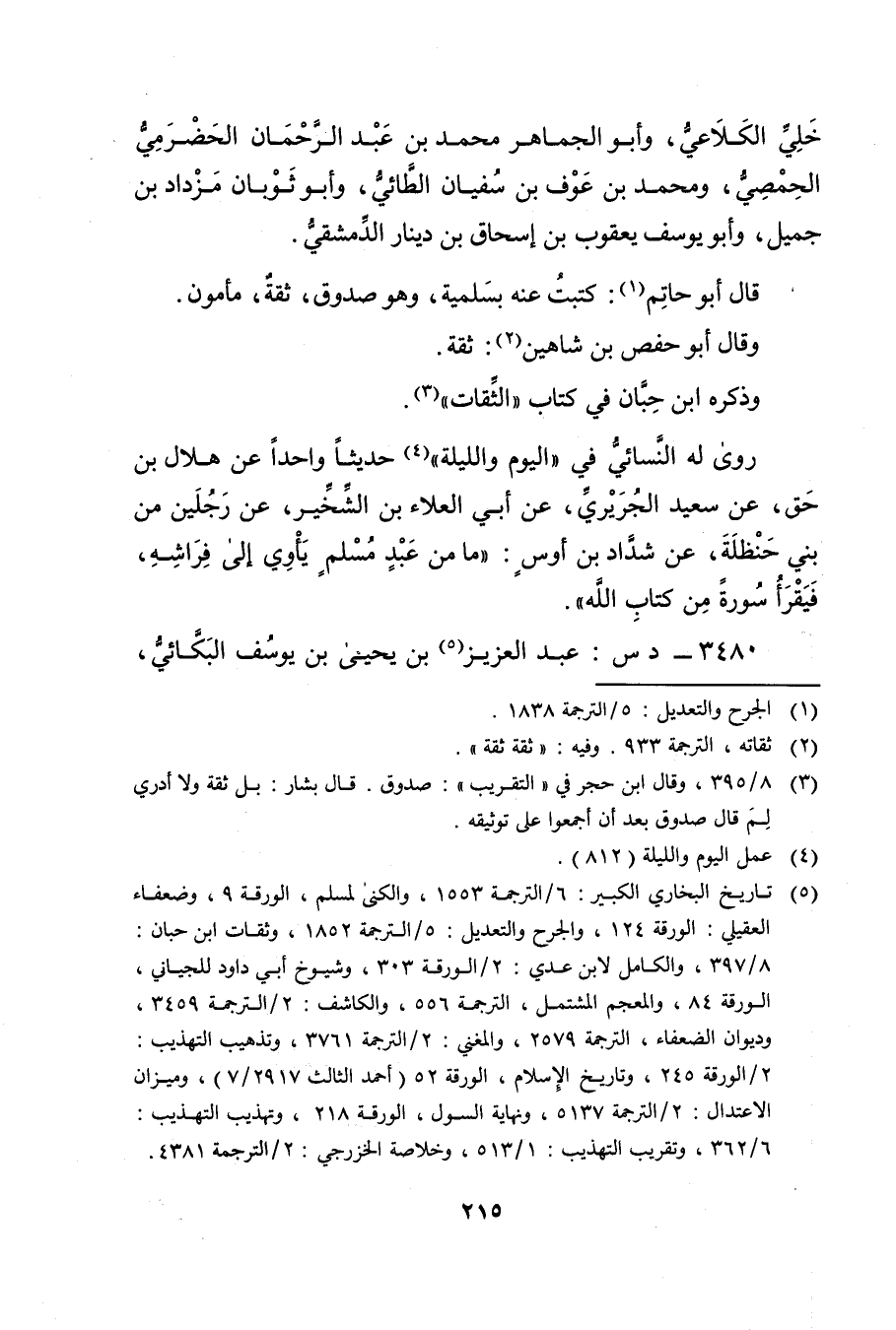 3480 - د س: عبد العزيز بن يحيى بن يُوسُفَ البكائي (5) ،