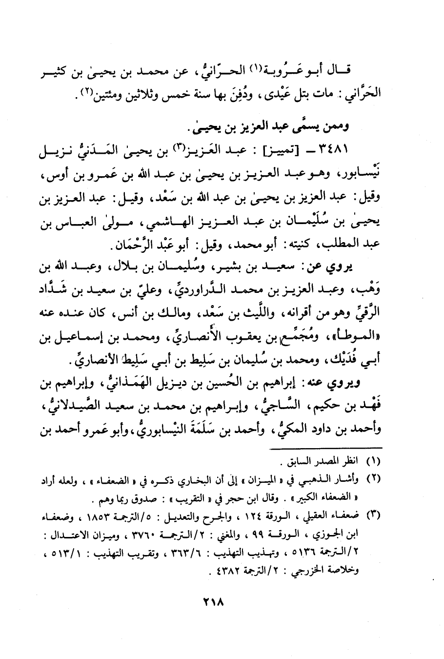 3481 - تمييز: عبد العزيز بن يحيى المدني نزيل نيسابور (3) ، وهو عبد العزيز بن يحيى بن عَبد اللَّهِ بْن عَمْرو بْن أوس، وقيل: عبد العزيز بن يحيى بْن عَبد اللَّهِ بْن سعد، وقيل: عبد العزيز بن يحيى بن سُلَيْمان بن عبد العزيز الهاشمي، مولى العباس بن عبد المطلب، كنيته: أبو محمد، وقيل: أبو عبد الرحمن.