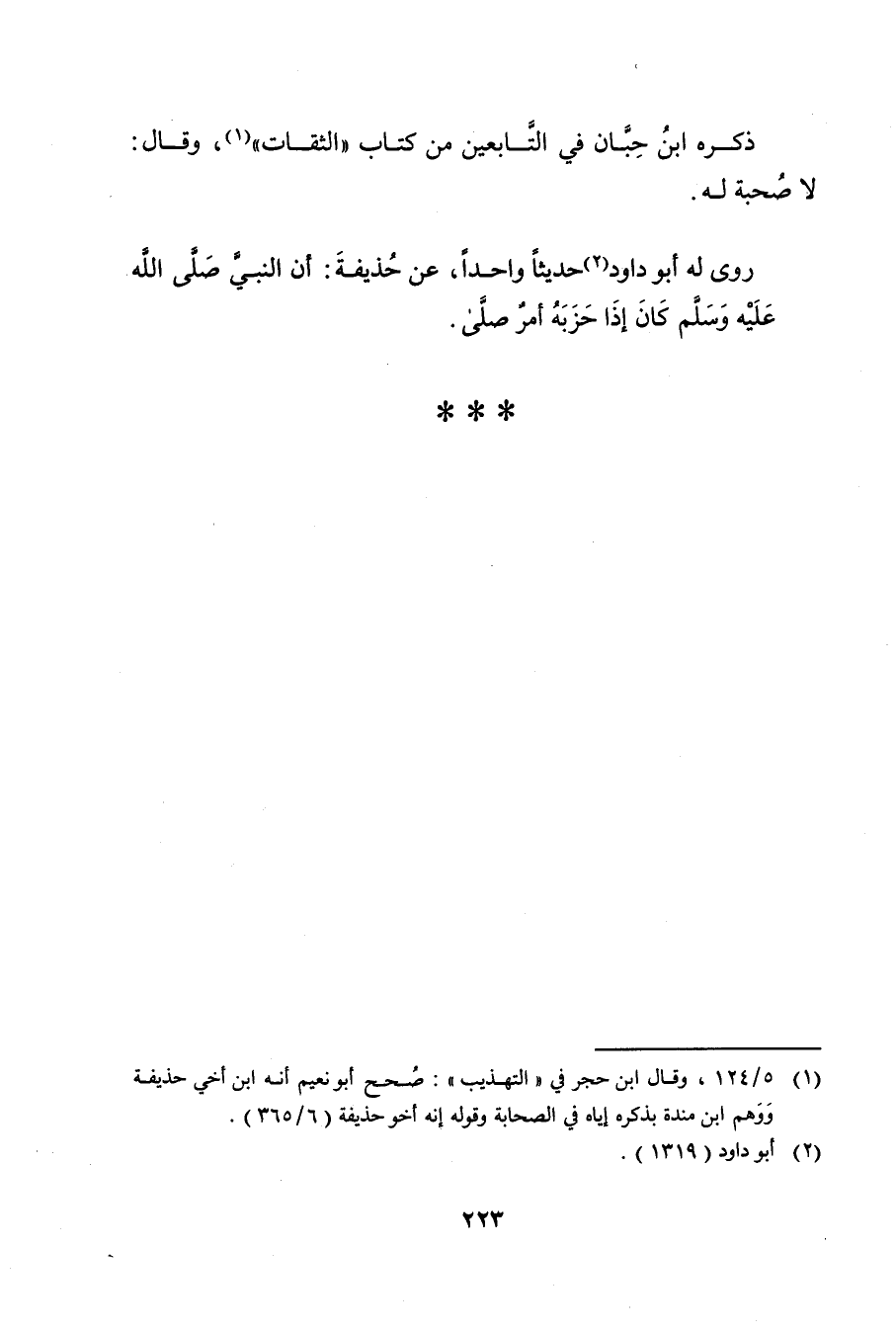 (1) 5 / 124، وَقَال ابن حجر في "التهذيب": صحح أبو نعيم أنه ابن أخي حذيفة ووهم ابن مندة بذكره إياه في الصحابة وقوله إنه أخو حذيفة (6 / 365) .