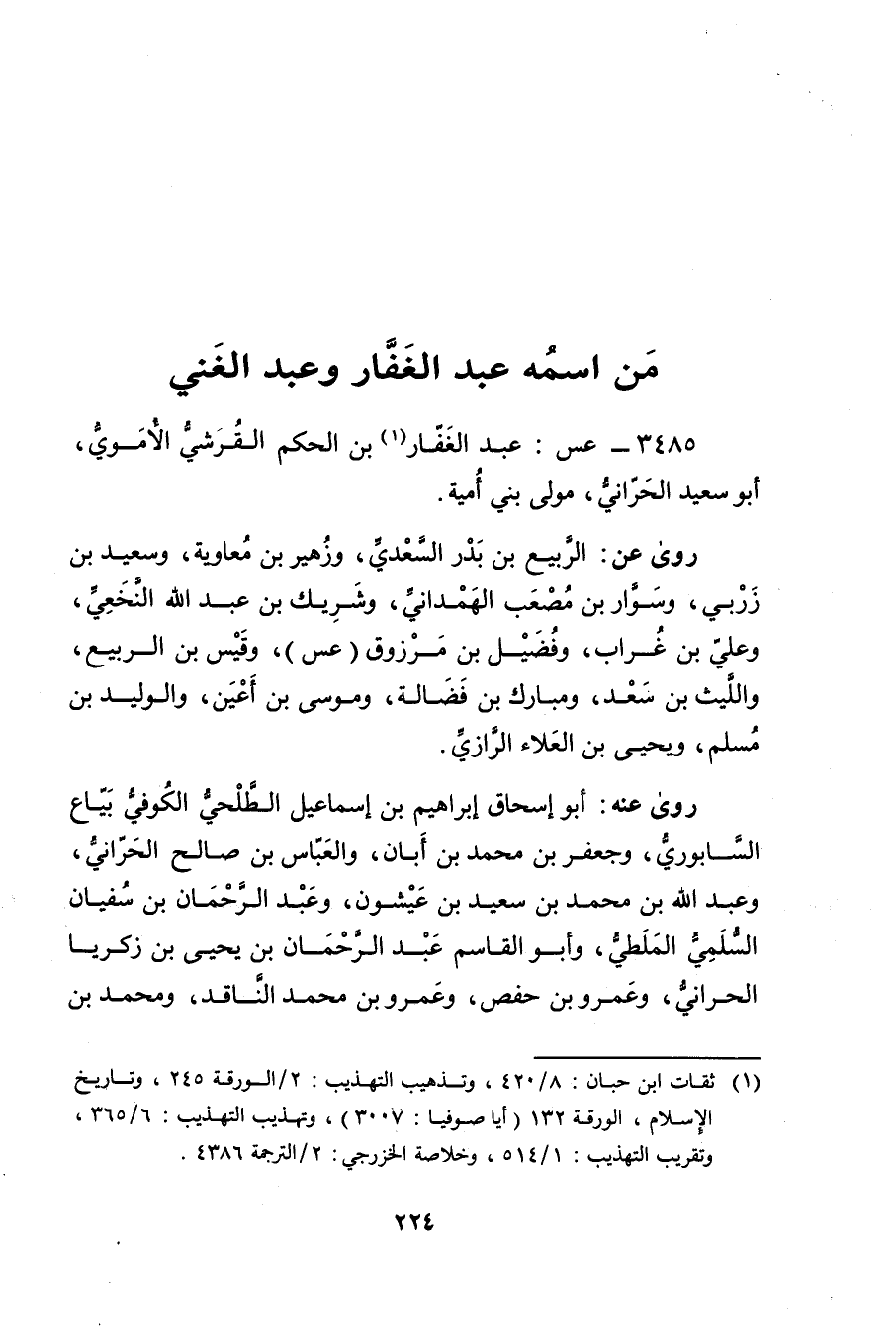3485 - عس: عبد الغفار بن الحكم القرشي الأُمَوِي (1) ، أبو سَعِيد الحراني، مولى بني أمية.