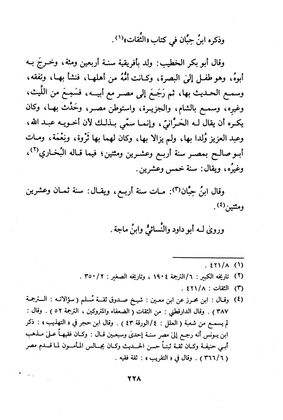 (2) تاريخه الكبير: 6 / الترجمة 1904، وتاريخه الصغير: 2 / 350.