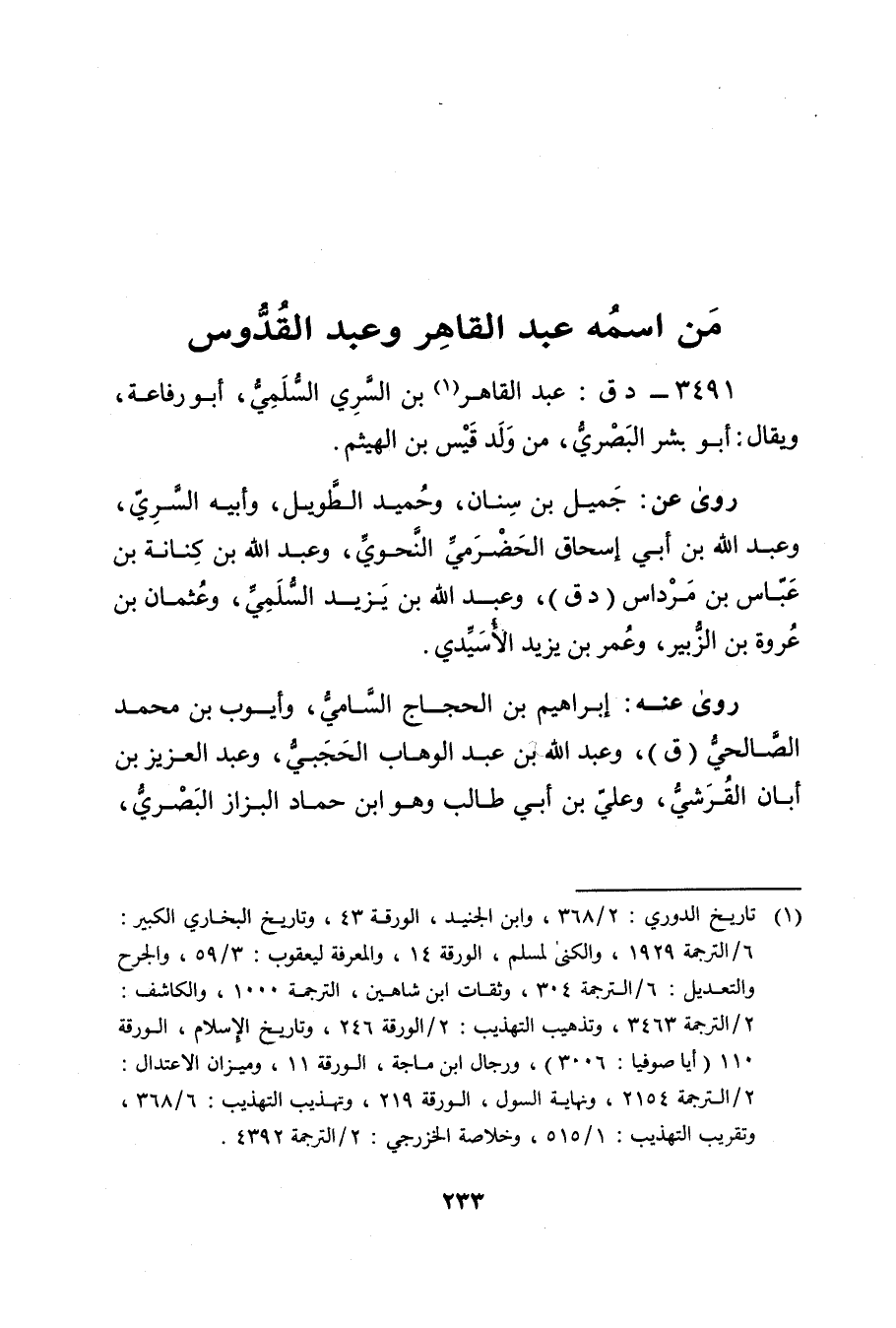 3491 - د ق: عبد القاهر بن السري السلمي (1) ، أبو رفاعة، ويُقال: أبو بشر البَصْرِيّ، من ولد قيس بن الهيثم.