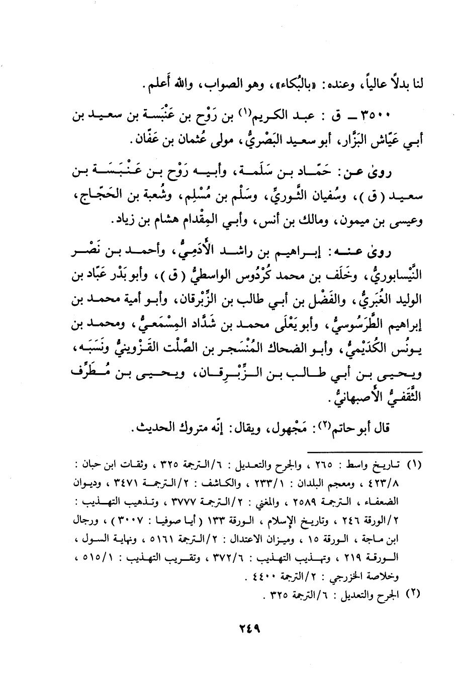 (1) تاريخ واسط: 265، والجرح والتعديل: 6 \ الترجمة 325، وثقات ابن حبان: 8 \ 423، ومعجم البلدان: 1 \ 233، والكاشف: 2 \ الترجمة 3471، وديوان الضعفاء، الترجمة 2589، والمغني: 2 \ الترجمة 3777، وتذهيب التهذيب: 2 \ الورقة 246، وتاريخ الاسلام، الورقة 133 (أيا صوفيا: 3007) ، ورجال ابن ماجة، الورقة 15، وميزان الاعتدال: 2 \ الترجمة 5161، ونهاية السول، الورقة 219، وتهذيب التهذيب: 371 1 6، وتقريب التهذيب: 1 \ 515، وخلاصة الخزرجي: 2 \ الترجمة 4400.