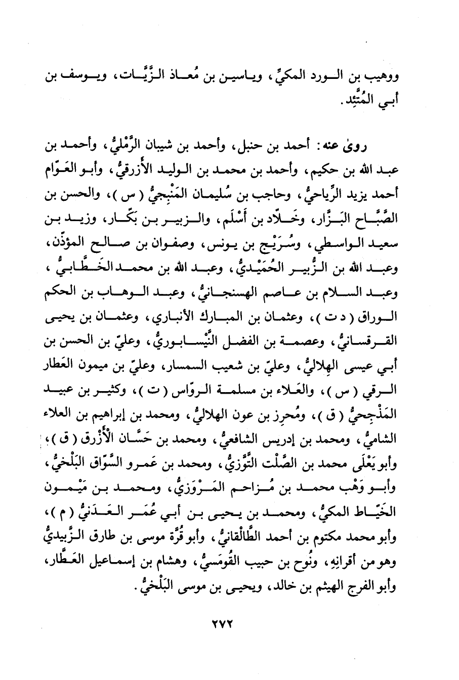 ووهيب بن الورد المكي، وياسين بن معاذ الزيات، ويوسف بن أَبي المتئد.