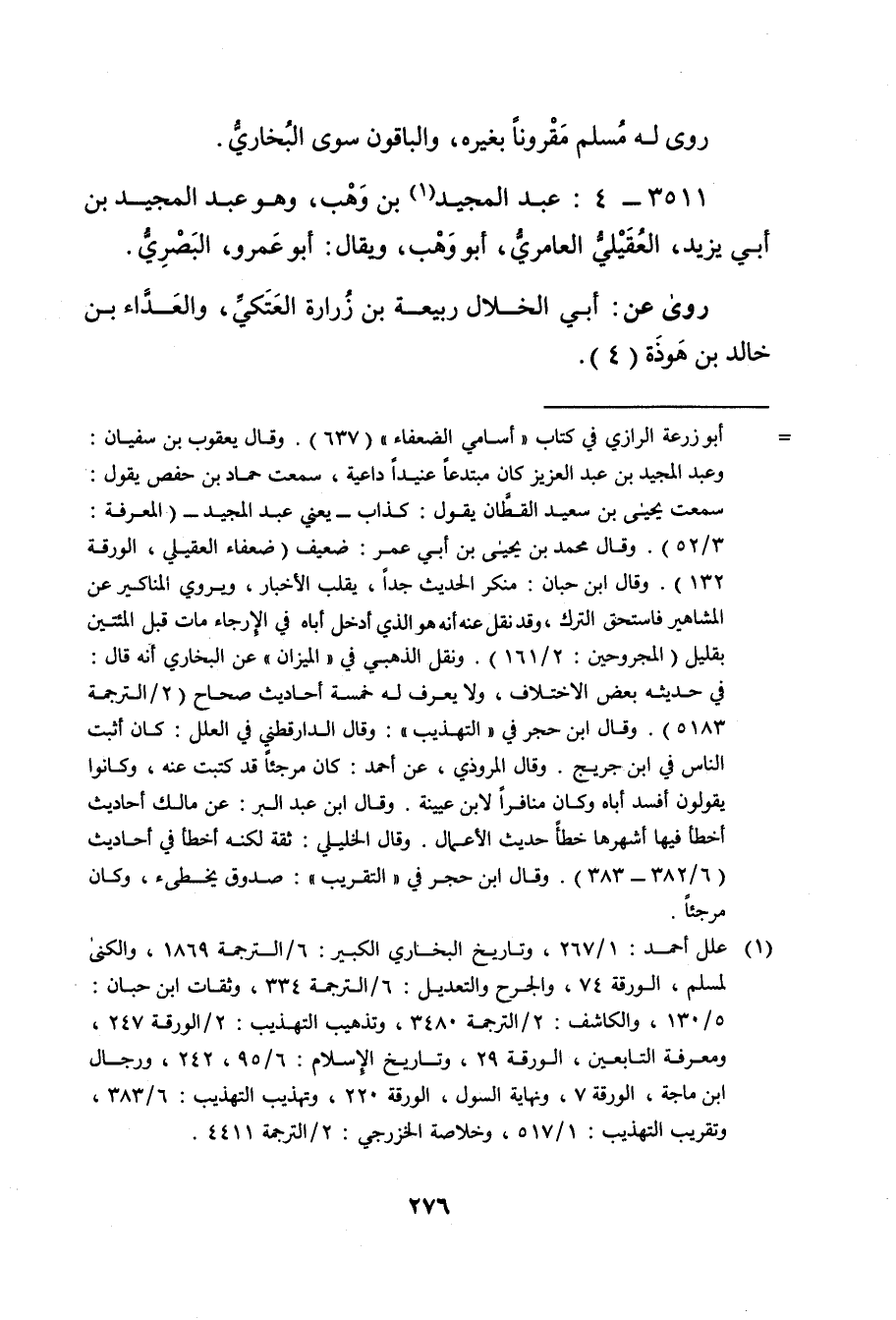 3511 - 4: عَبد المجيد بن وهب (1) ، وهو عَبد المجيد بن أَبي يزيد، العقيلي العامري، أبو وهب، ويُقال: أبو عَمْرو، البَصْرِيّ.