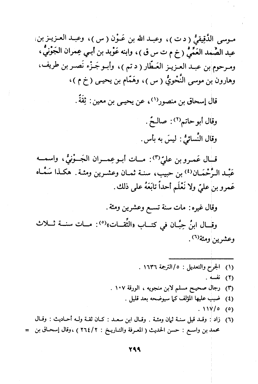 (6) زاد: وقد قيل سنة ثمان ومئة. وَقَال ابن سعد: كان ثقة وله أحاديث: وَقَال محمد بن واسع: حسن الحديث (المعرفة والتاريخ: 2 / 264) ، وَقَال إسحاق بن =