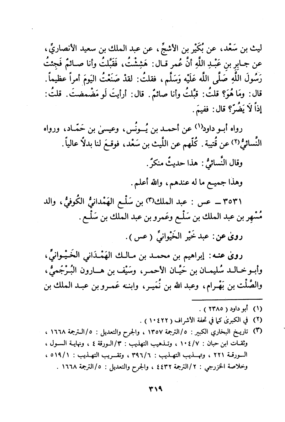 (3) تاريخ البخاري الكبير: 5 / الترجمة 1357، والجرح والتعديل: 5 / الترجمة 1668، وثقات ابن حبان: 7 / 104، وتذهيب التهذيب: 3 / الورقة 4، ونهاية السول، الورقة 221، وتهذيب التهذيب: 6 / 396، وتقريب التهذيب: 1 / 519، وخلاصة الخزرجي: 2 / الترجمة 4432، والجرح والتعديل: 5 / الترجمة 1668.