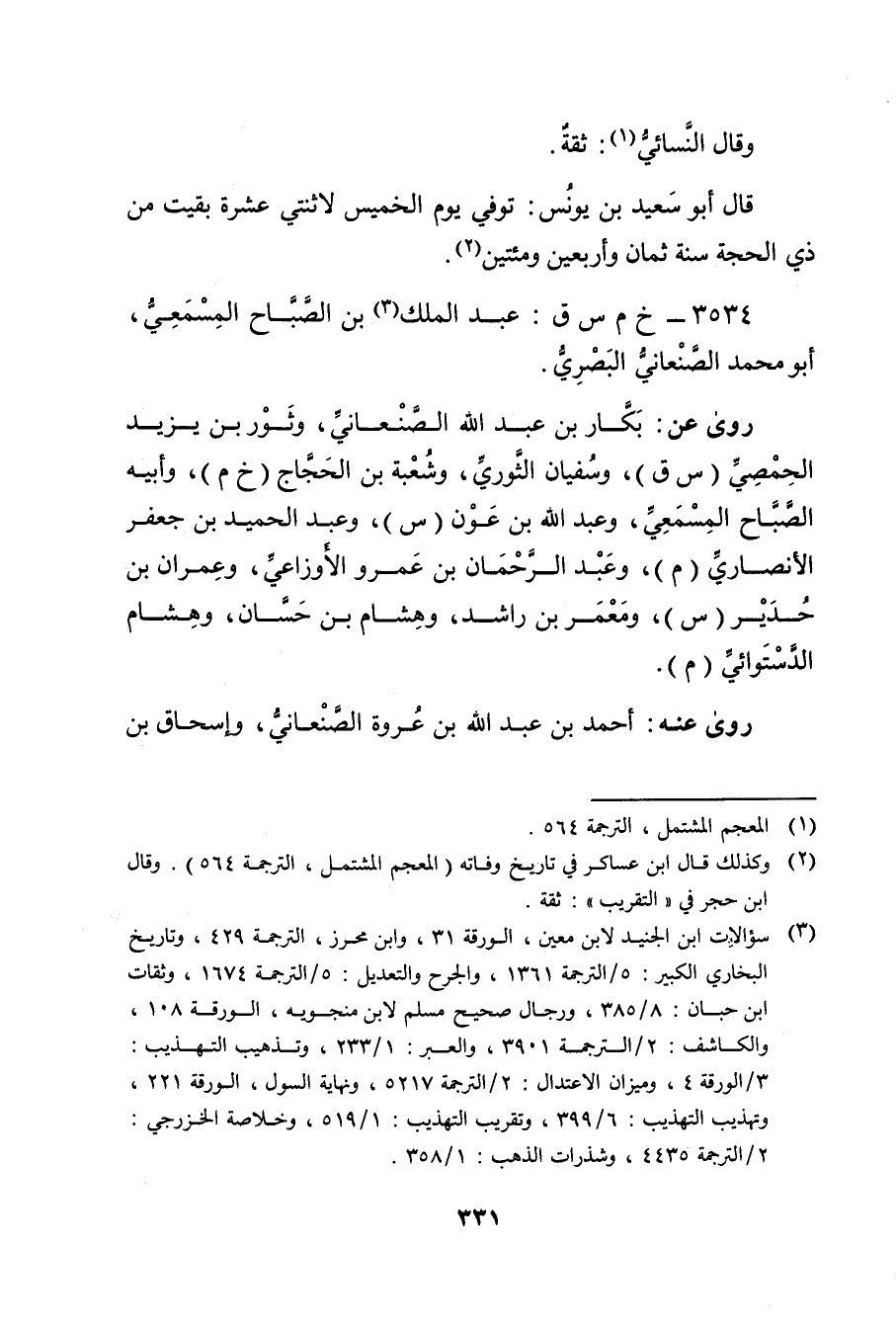 3534 - خ م س ق: عَبد المَلِك بن الصباح المسمعي (3) ، أبو محمد الصنعاني البَصْرِيّ.