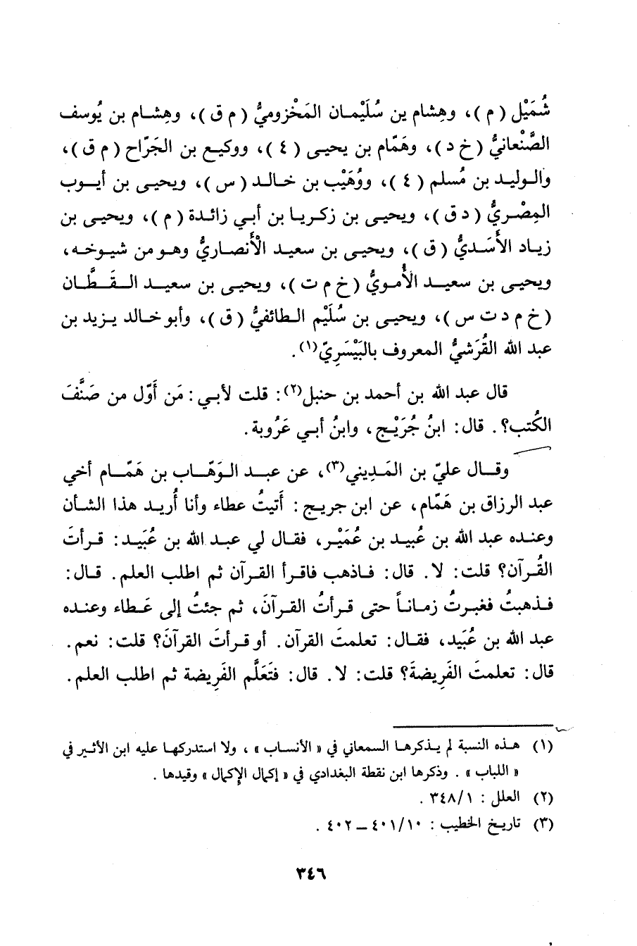 قال عَبد اللَّهِ بْن أَحْمَد بْن حنبل (2) : قلتُ لأبي: من أوب من صنف الكتب؟. قال: ابن جُرَيْج، وابن أَبي عَرُوبَة.
