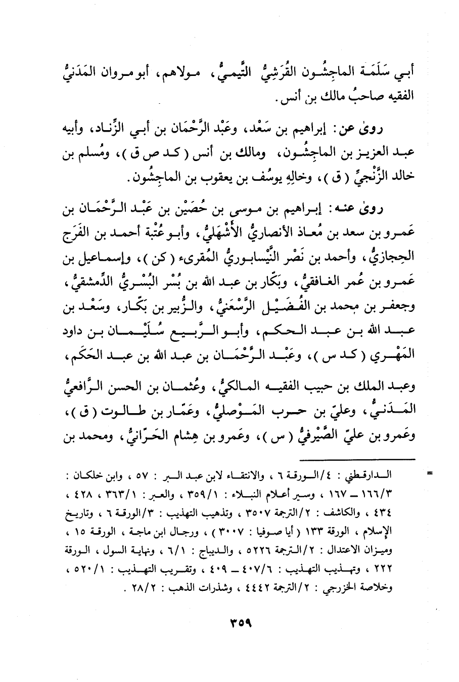 الدارقطني: 4 / الورقة 6، والانتقاء لابن عَبد الْبَرِّ: 57، وابن خلكان: 3 / 166 - 167، وسير أعلام النبلاء: 1 / 359، والعبر: 1 / 363، 428، 434، والكاشف: 2 / الترجمة 3507، وتذهيب التهذيب: 3 / الورقة 6، وتاريخ الاسلام، الورقة 133 (أيا صوفيا: 3007) ، ورجال ابن ماجة، الورقة 15، وميزان الاعتدال: 2 / الترجمة 5226، والديباج: 1 / 6، ونهاية السول، الورقة 222، وتهذيب التهذيب: 6 / 407 - 409، وتقريب التهذيب: 1 / 520، وخلاصة الخزرجي: 2 / الترجمة 4442، وشذرات الذهب: 2 / 28.
