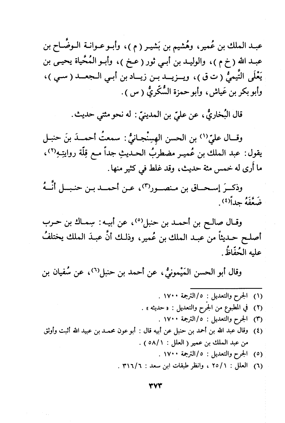(6) العلل: 1 / 25، وانظر طبقات ابن سعد: 6 / 316.