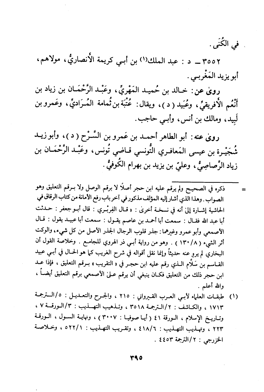 3552 - د: عَبد المَلِك بن أَبي كريمة الأَنْصارِيّ (1) ، مولاهم، أبو يزيد المغربي.
