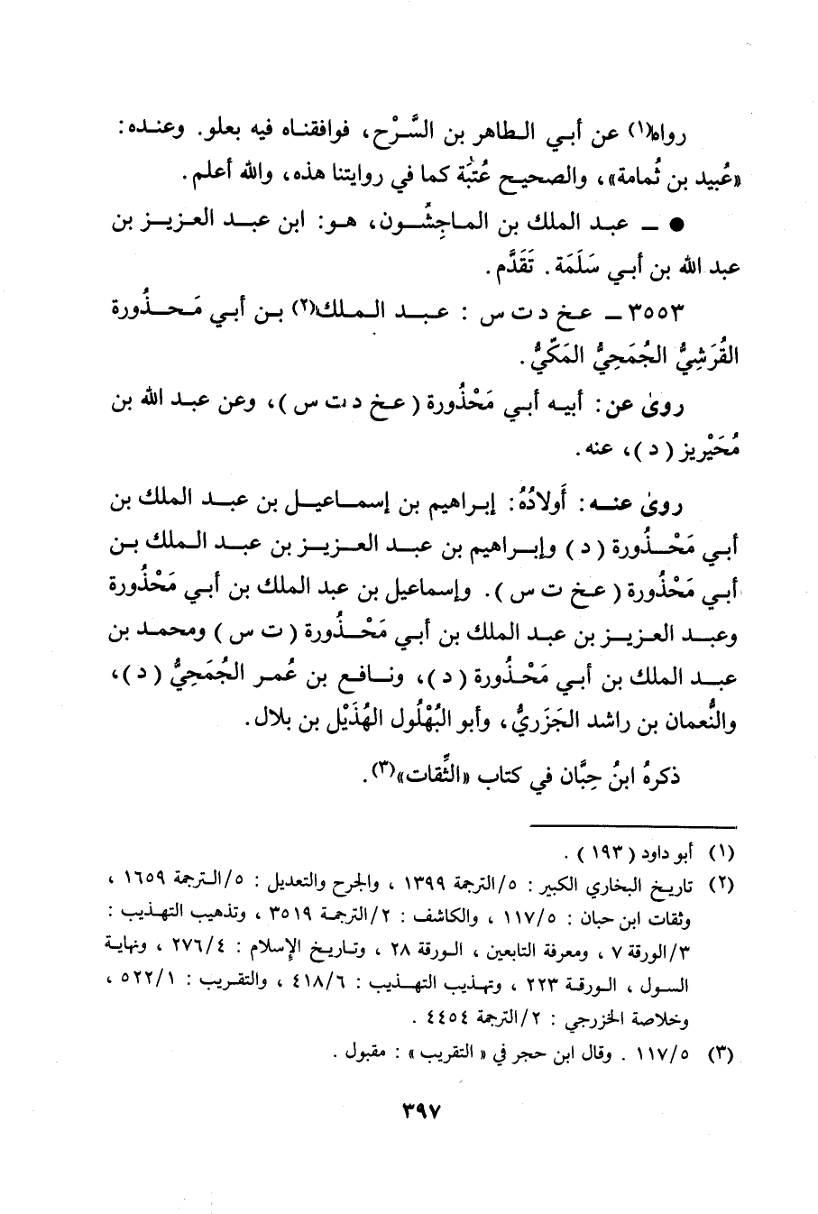 3553 - عخ د ت س: عَبد المَلِك بن أَبي محذورة القرشي الجمحي المكي (2) .