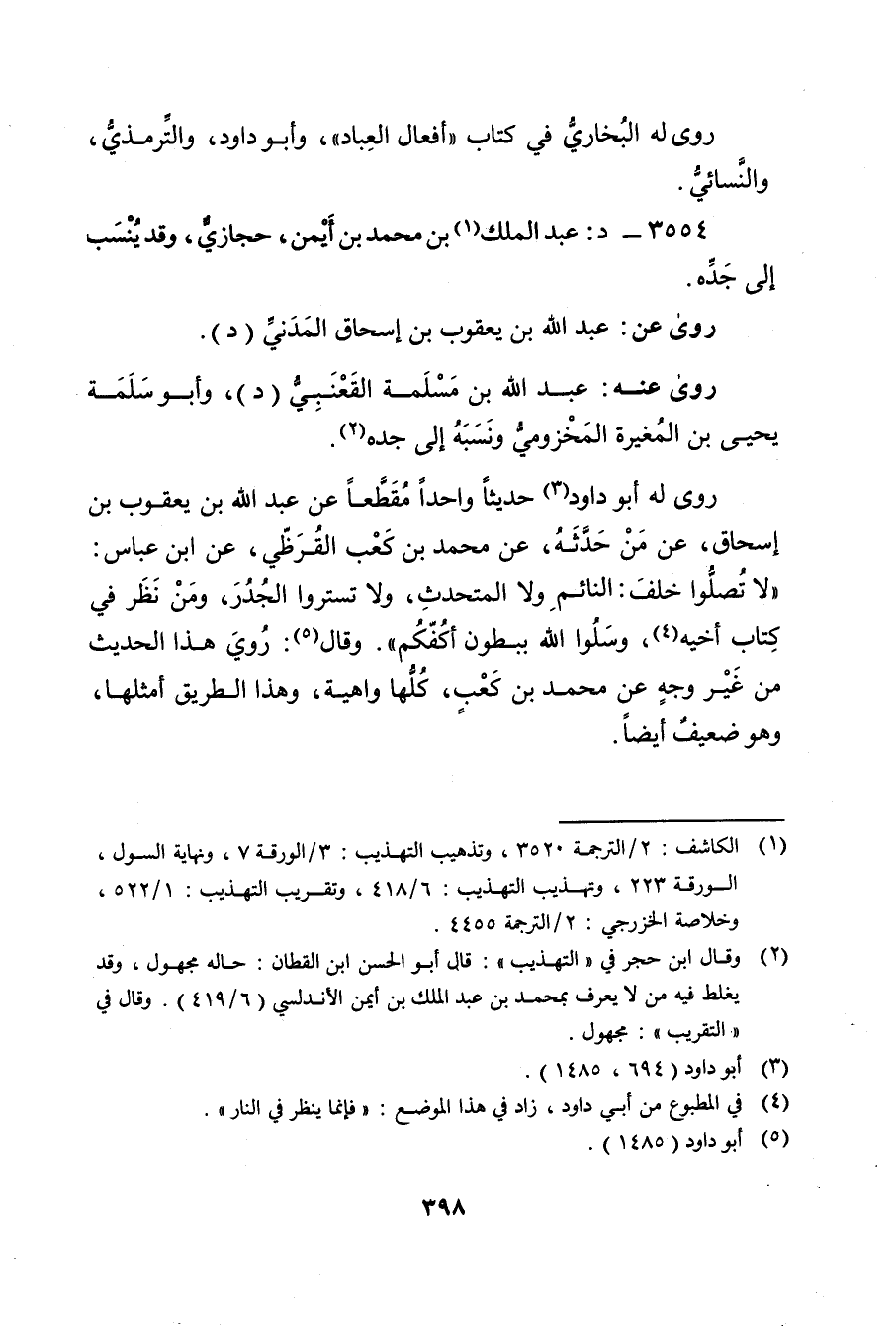 3554 - د: عَبد المَلِك بن مُحَمَّدِ بن أيمن (1) ، حجازي، وقد ينسب إِلَى جده.