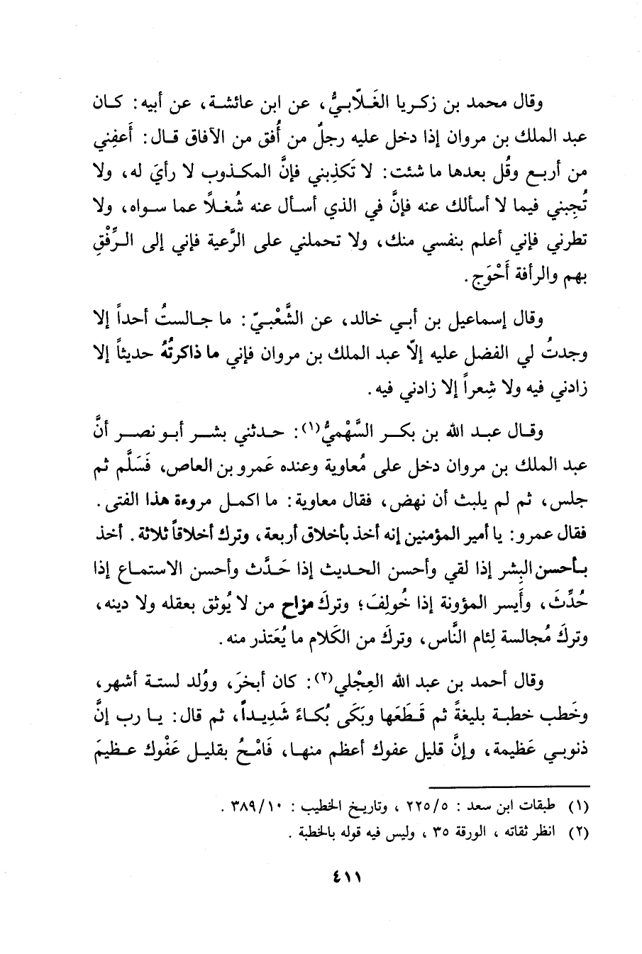 (1) طبقات ابن سعد: 5 \ 225، وتاريخ الخطيب: 10 \ 389.