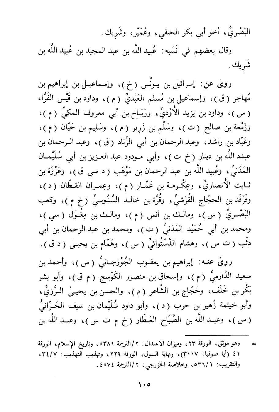 البَصْرِيّ، أَخُو أَبِي بَكْر الحنفي، وعمير، وشَرِيك.