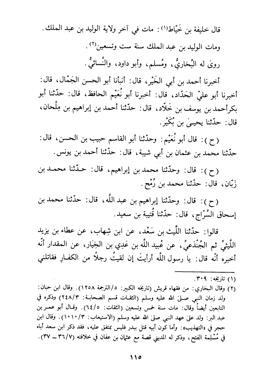 (ح) : قال: وحَدَّثَنَا إِبْرَاهِيمُ بْنُ عَبد اللَّهِ، قال: حَدَّثَنَا مُحَمَّدُ بْن إسحاق السراج، قال: حَدَّثَنَا قُتَيْبَةُ بْنُ سَعِيد.