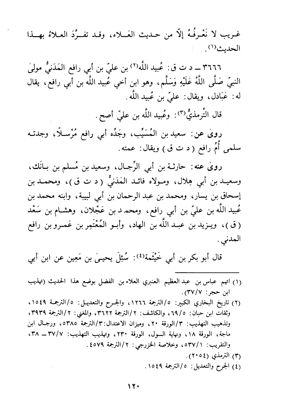 3666 - د ت ق: عُبَيد اللَّه بْن عَلِيِّ بْن أَبي رافع المدني مولى النَّبِي صَلَّى اللَّهُ عَلَيْهِ وسَلَّمَ (2) ، وهو ابن أخي عُبَيد اللَّه بْن أَبي رافع، يقال لَهُ: عبادل، ويُقال: عَلِي بْن عُبَيد اللَّه.