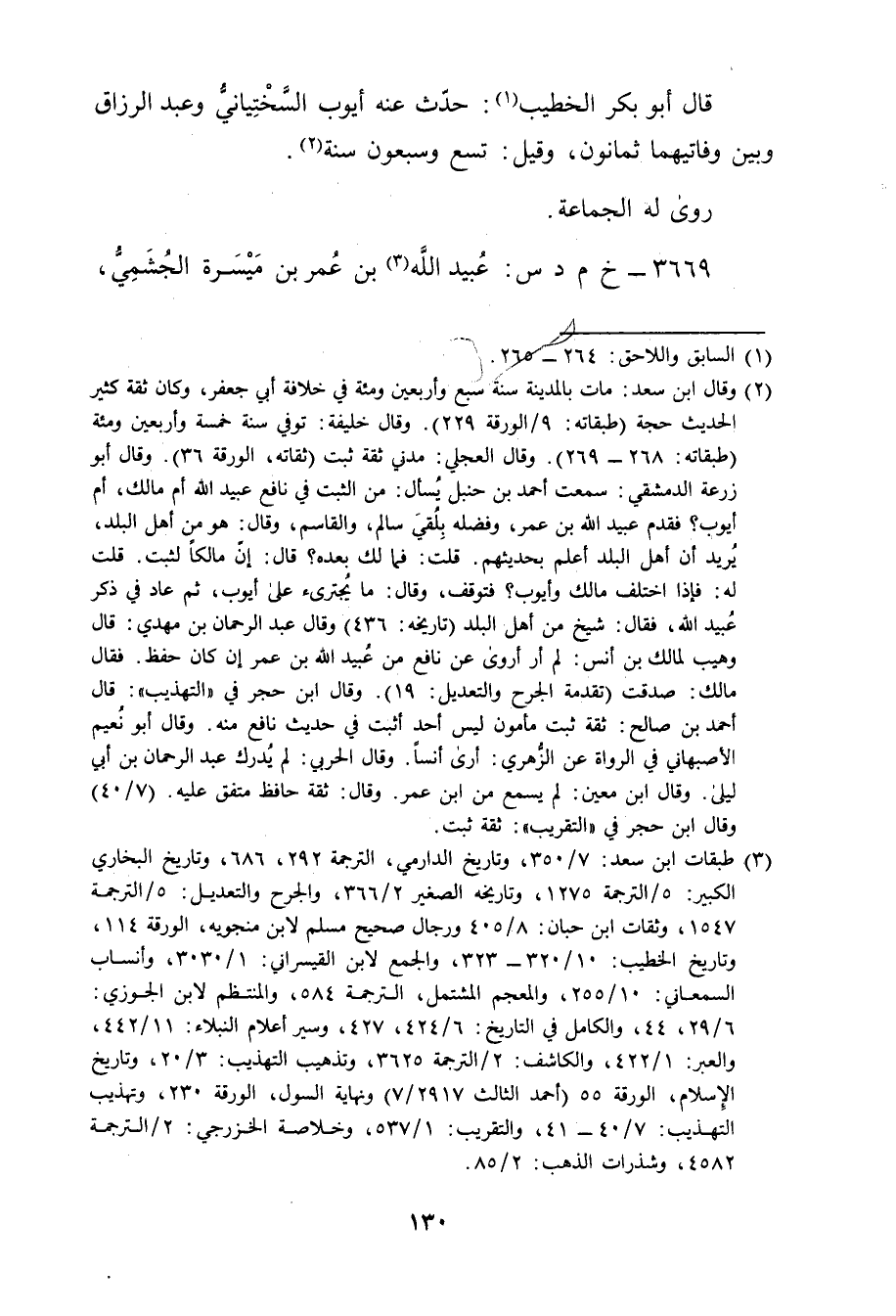 3669 - خ م د س: عُبَيد الله بْن عُمَر بْن ميسرة الجشمي (3) ،