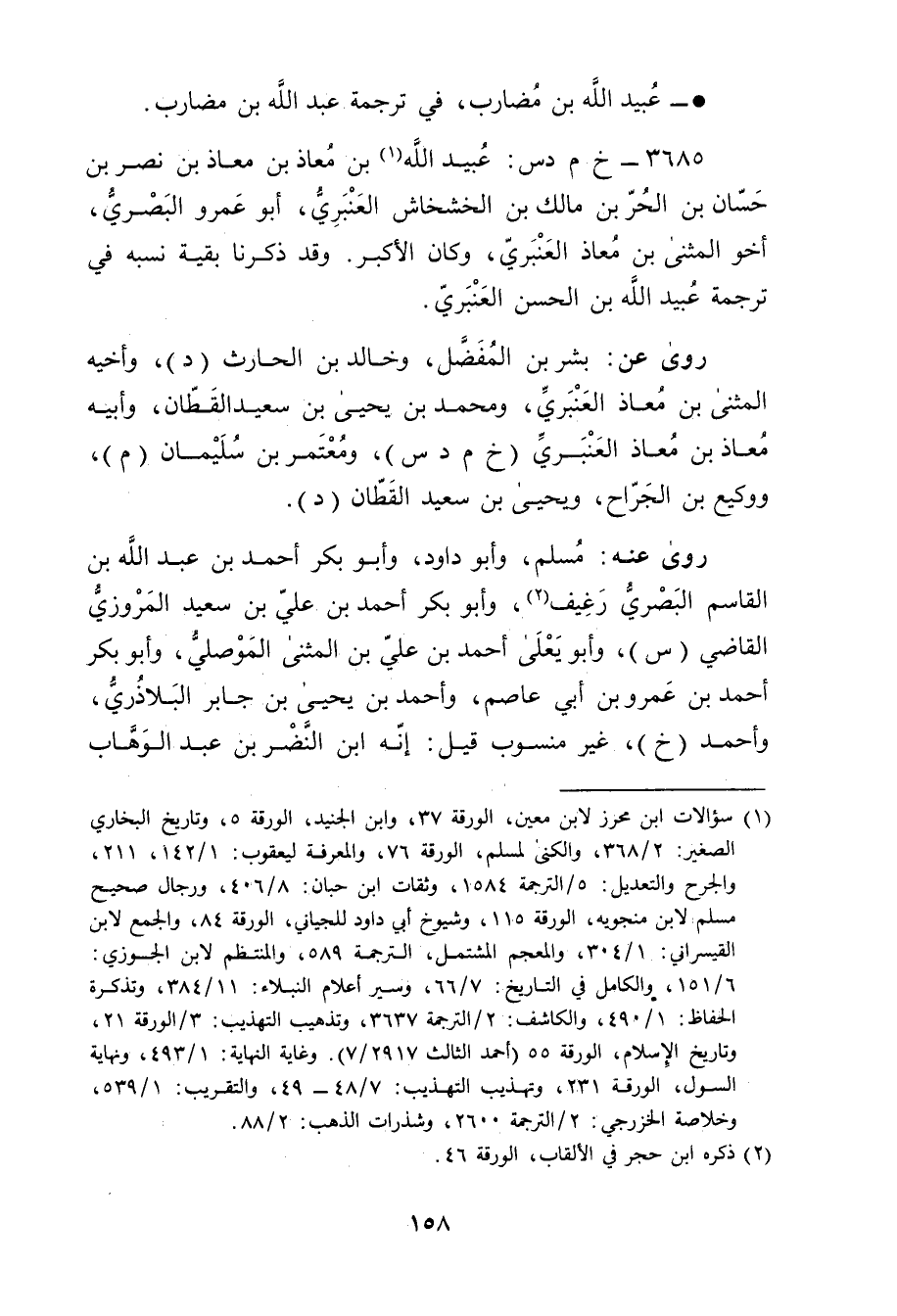 3685 - خ م د س: عُبَيد الله بن معاذ بن نصر بن حسان بن الحر بن مَالِك بن الخشخاش العنبري (1) ، أَبُو عَمْرو البَصْرِيّ، أَخُو المثنى بْن معاذ العنبري، وكَانَ الأكبر.