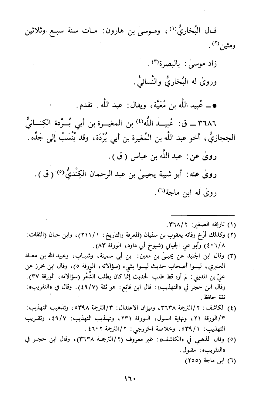 (4) الكاشف: 2 / الترجمة 3638، وميزان الاعتدال: 3 / الترجمة، وتذهيب التهذيب: 3 / الورقة 21، ونهاية السول، الورقة 231، وتهذيب التهذيب: 7 / 49، وتقريب التهذيب: 1 / 539، وخلاصة الخزرجي: 2 / الترجمة 4602.