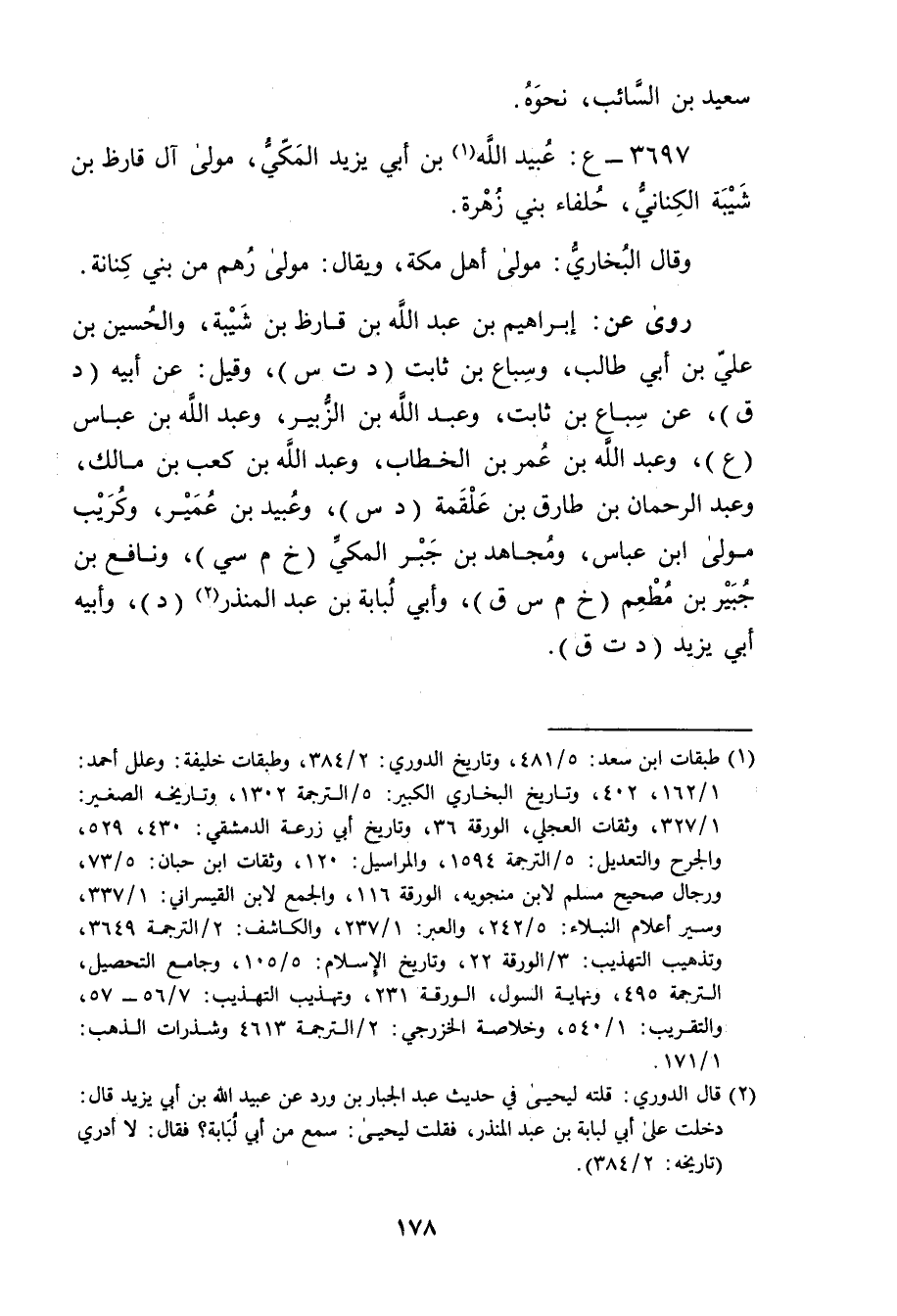 3697 - ع: عُبَيد اللَّه بن أَبي يَزِيد الْمَكِّي (1) ، مولى آل قارظ بْن شَيْبَة الكناني، حلفاء بَنِي زهرة.