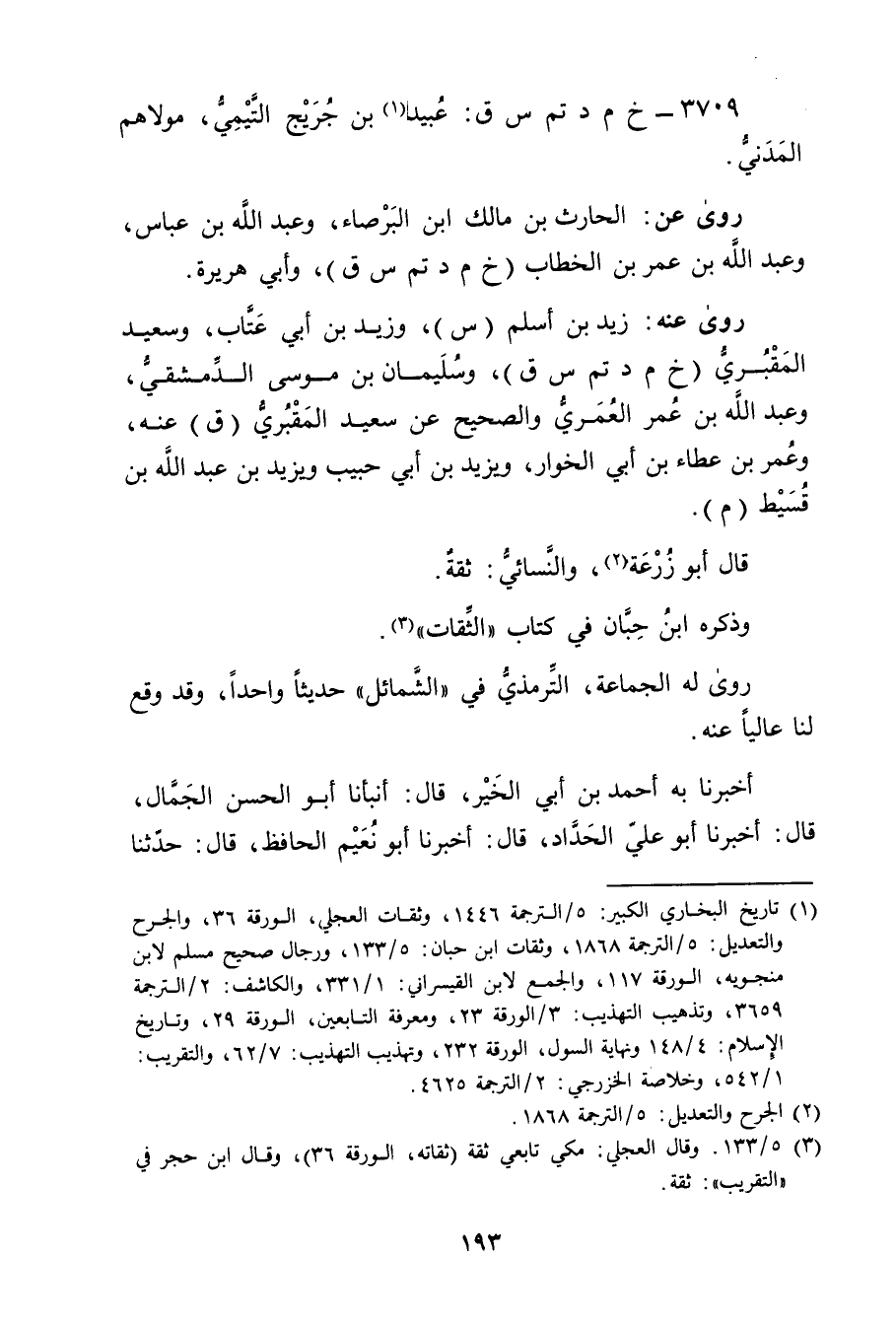 3709 - خ م د تم س ق: عُبَيد بن جُرَيْج التيمس (1) ، مولاهم المدني.