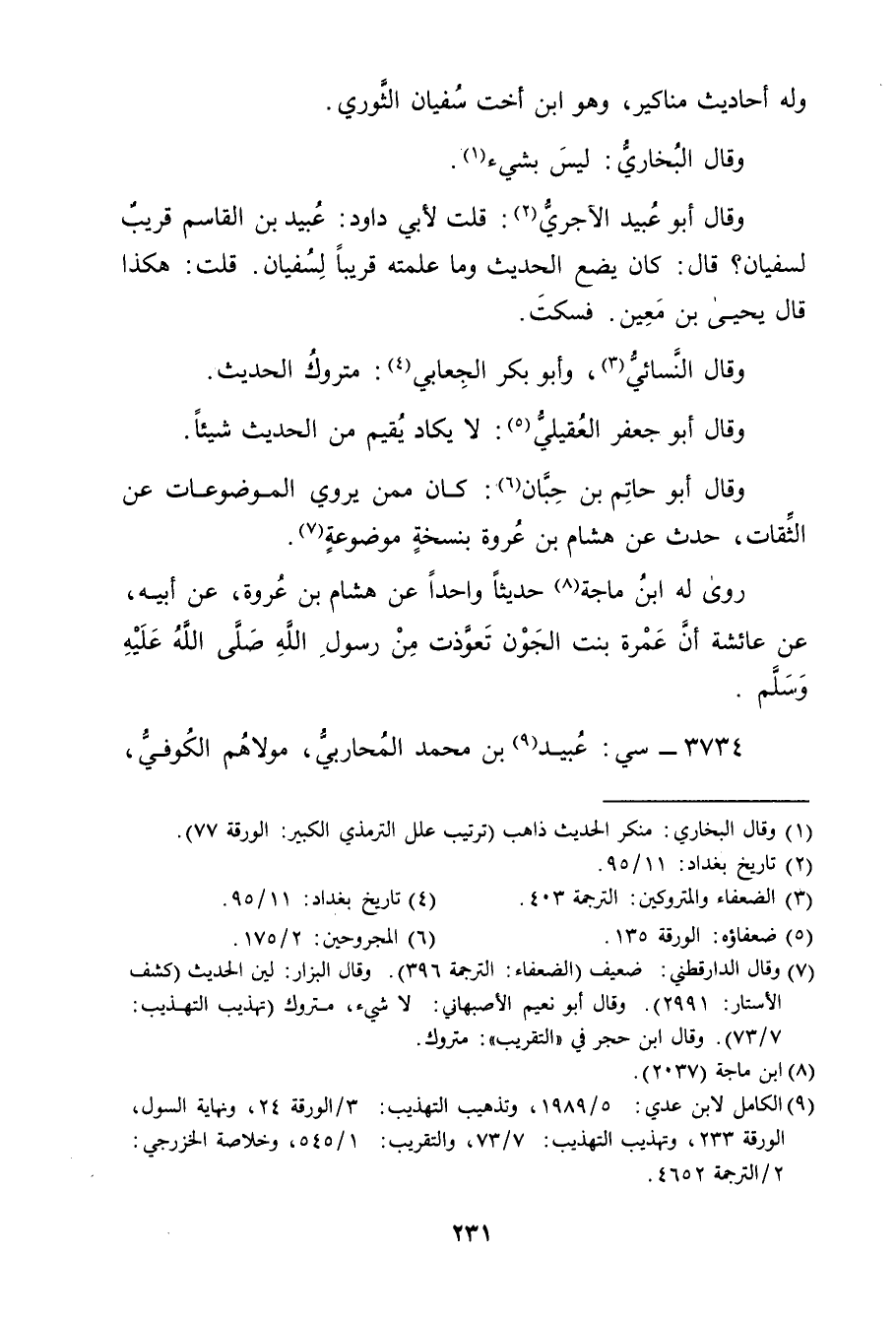 3734 - سي: عُبَيد بن مُحَمَّد المحاربي (9) ، مولاهم الكوفي،