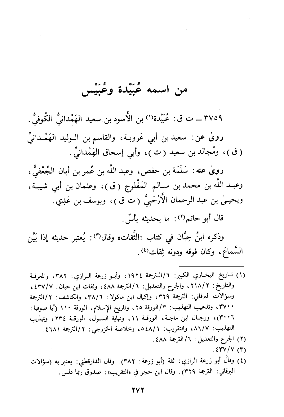 3759 - ت ق: عُبَيدة بن الأسود بن سَعِيد الهمداني الكوفي (1) .