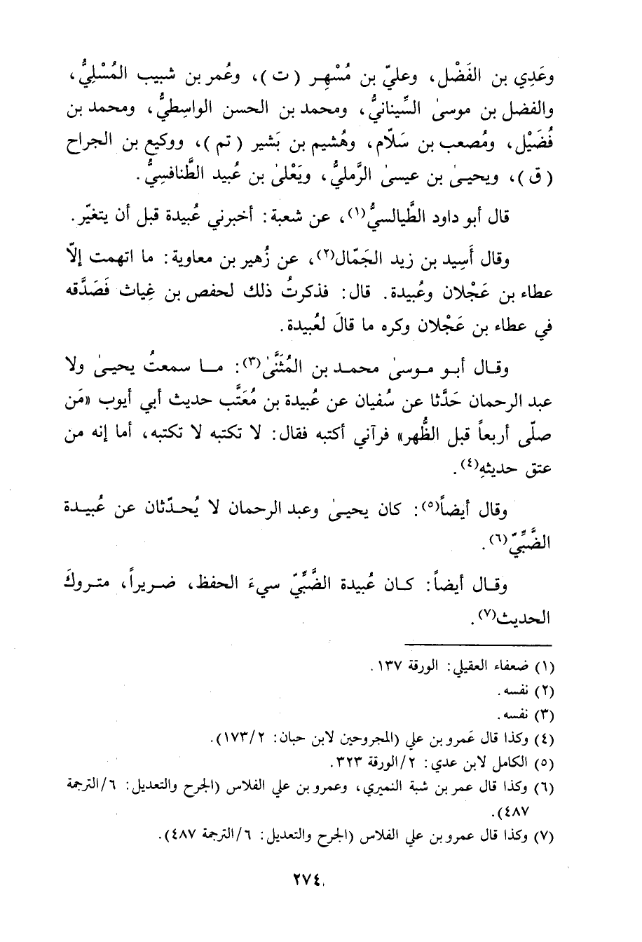 (7) وكذا قال عَمْرو بن علي الفلاس (الجرح والتعديل: 6 / الترجمة 487) .