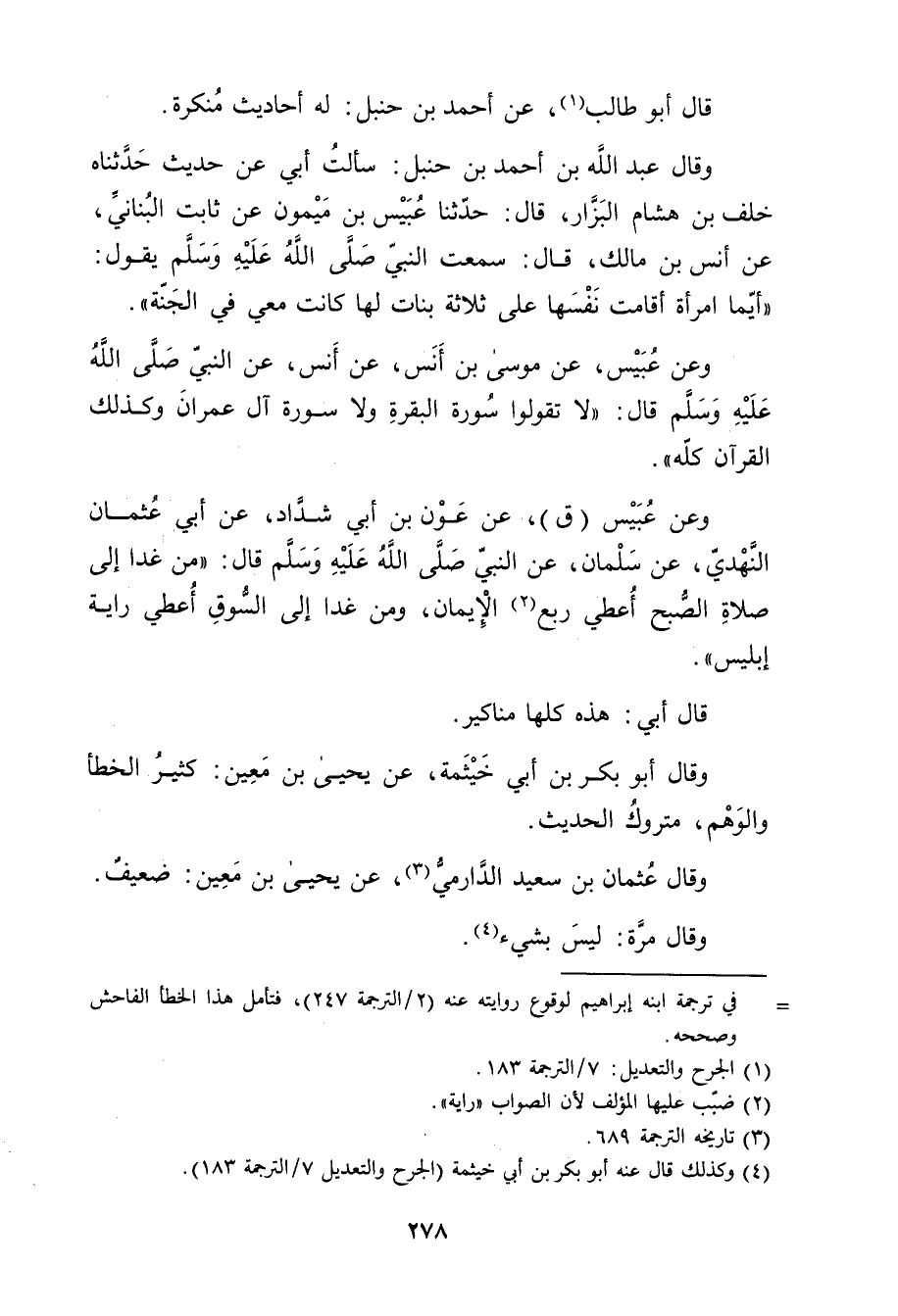 (4) وكذلك قال عنه أَبُو بكر بن أَبي خيثمة (الجرح والتعديل 7 / الترجمة 183) .